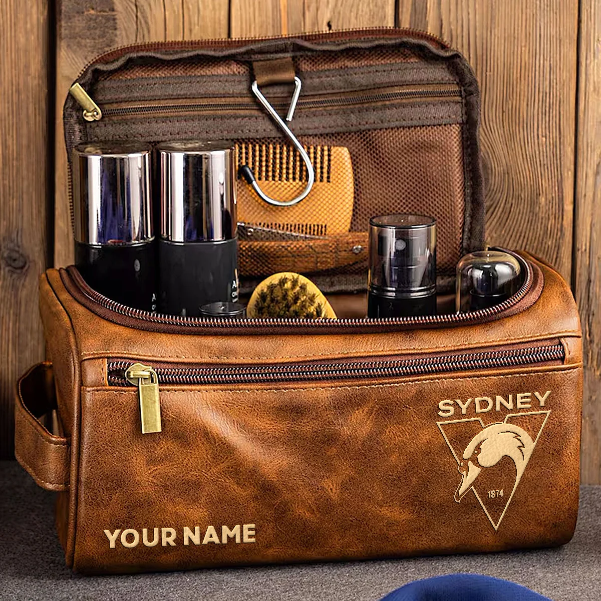 Sydney Swans AFL Exclusive Logo Personalized Leather Toiletry Bag, Fishing Leather Toiletry Bag