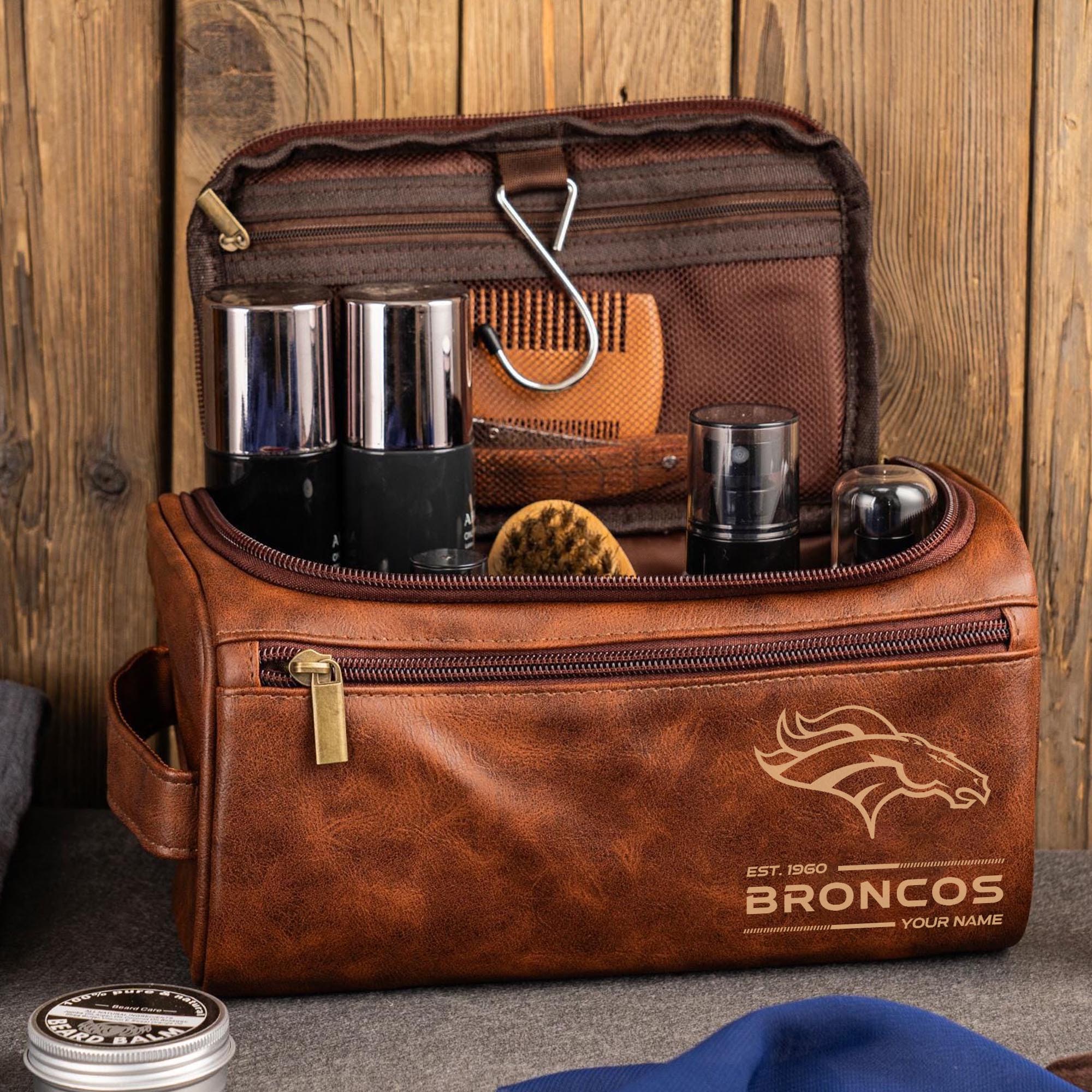 Denver Broncos Leather Toiletry Bag, Fishing Leather Toiletry Bag