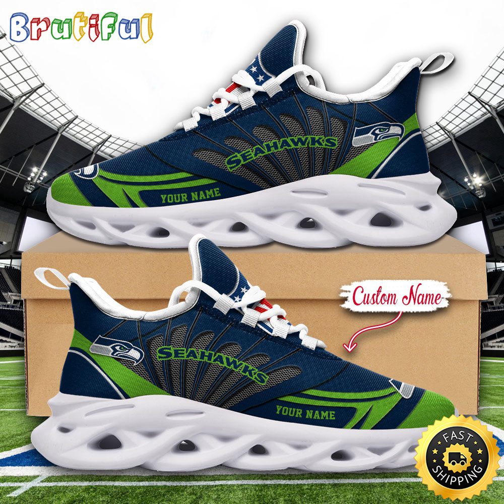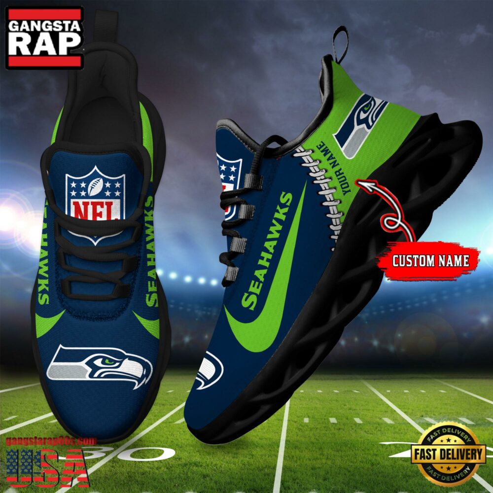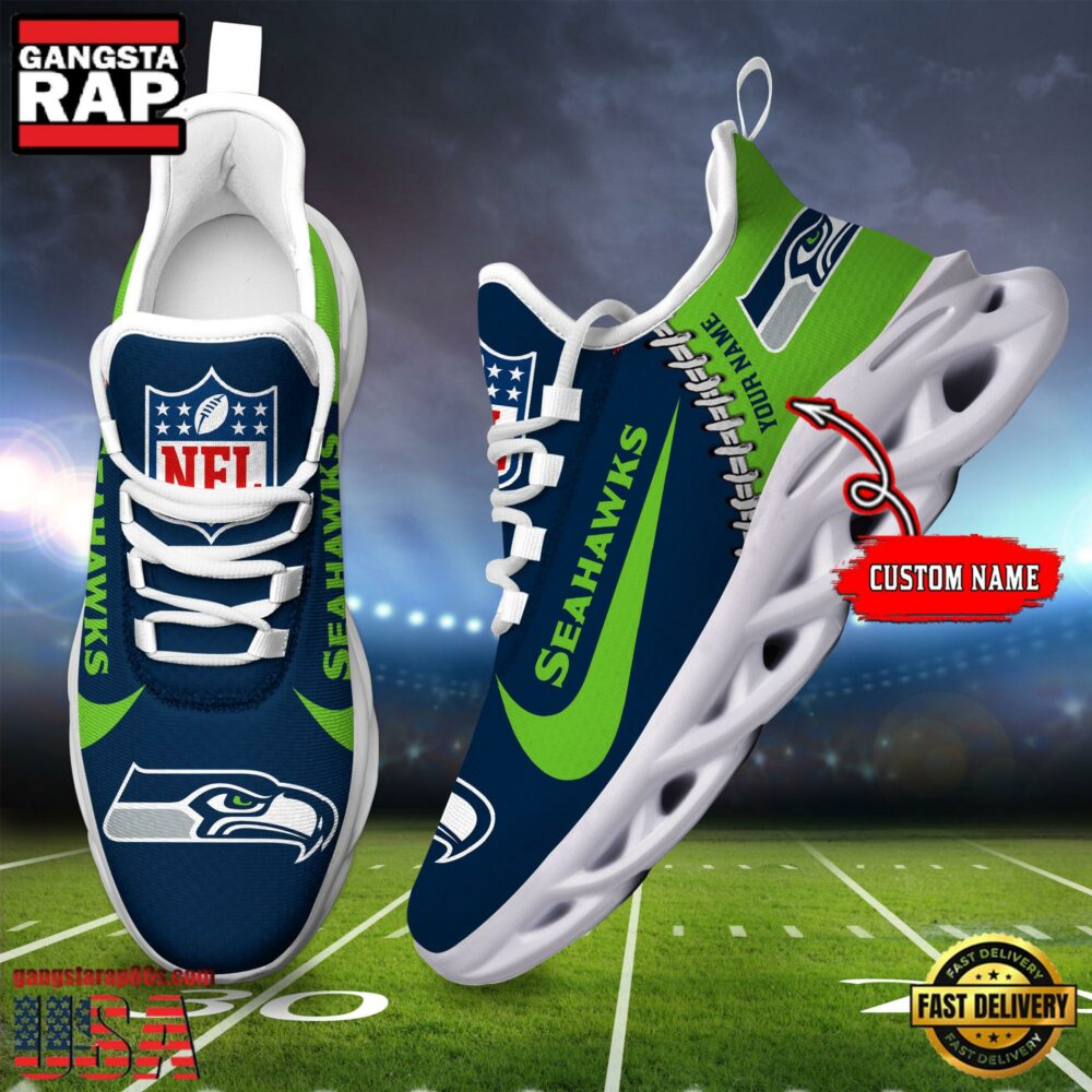 Seattle Seahawks Max Soul Shoes Sneakers Printed White And Black Sole For Men And Women