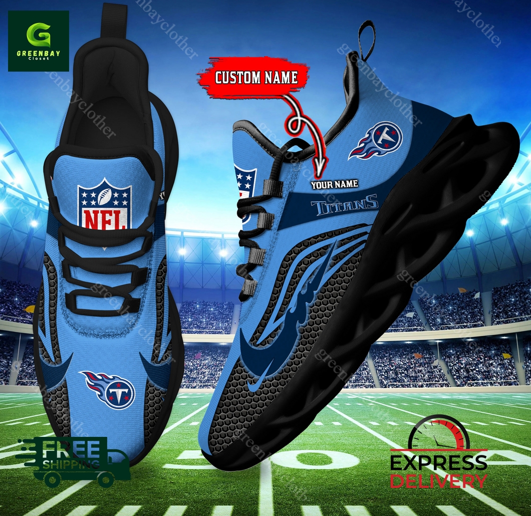 Tennessee Titans Max Soul Shoes Sneakers Printed White And Black Sole For Men And Women