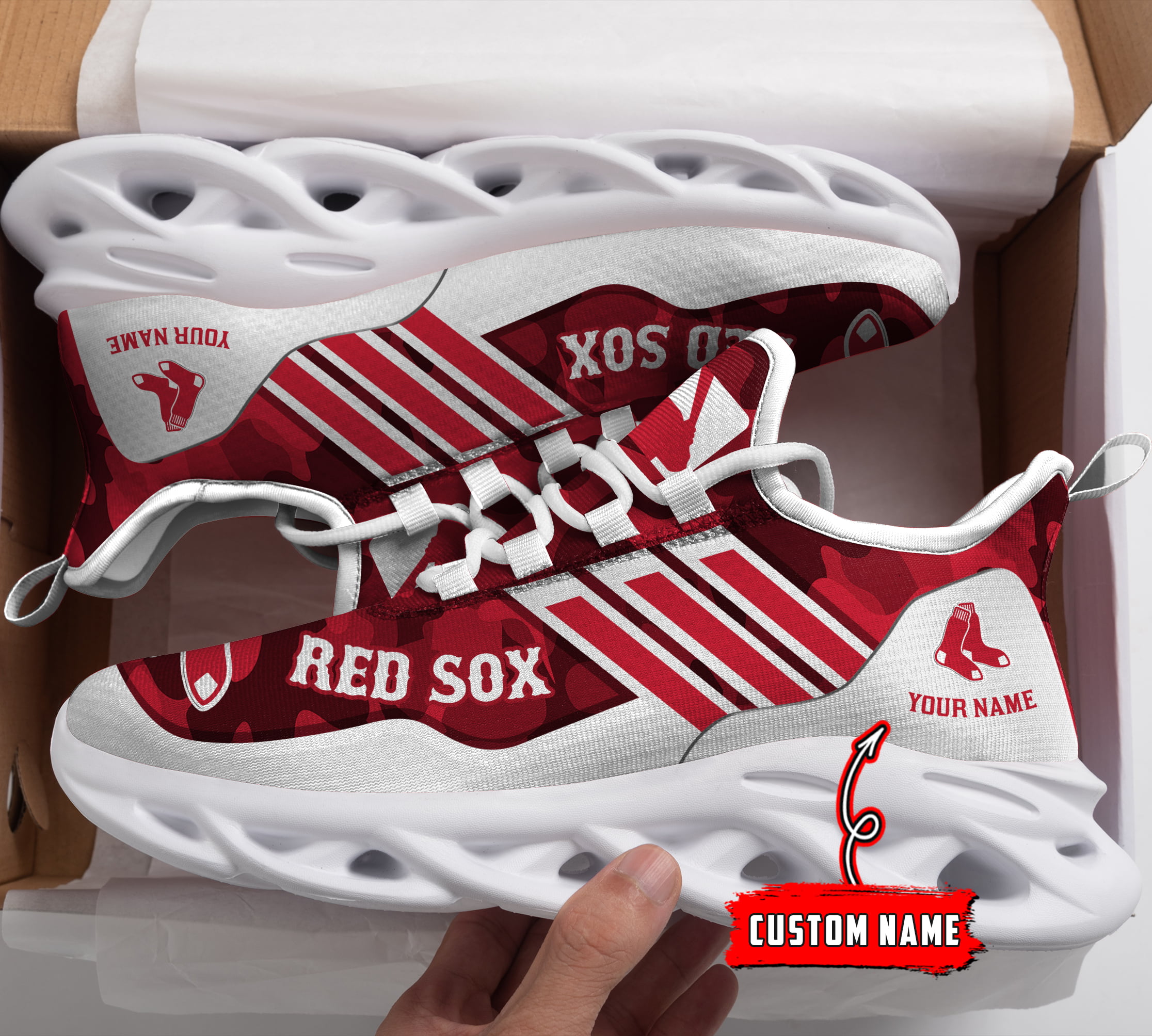 Boston Red Sox NCAA Max Soul Shoes Sneakers Printed White And Black Sole For Men And Women