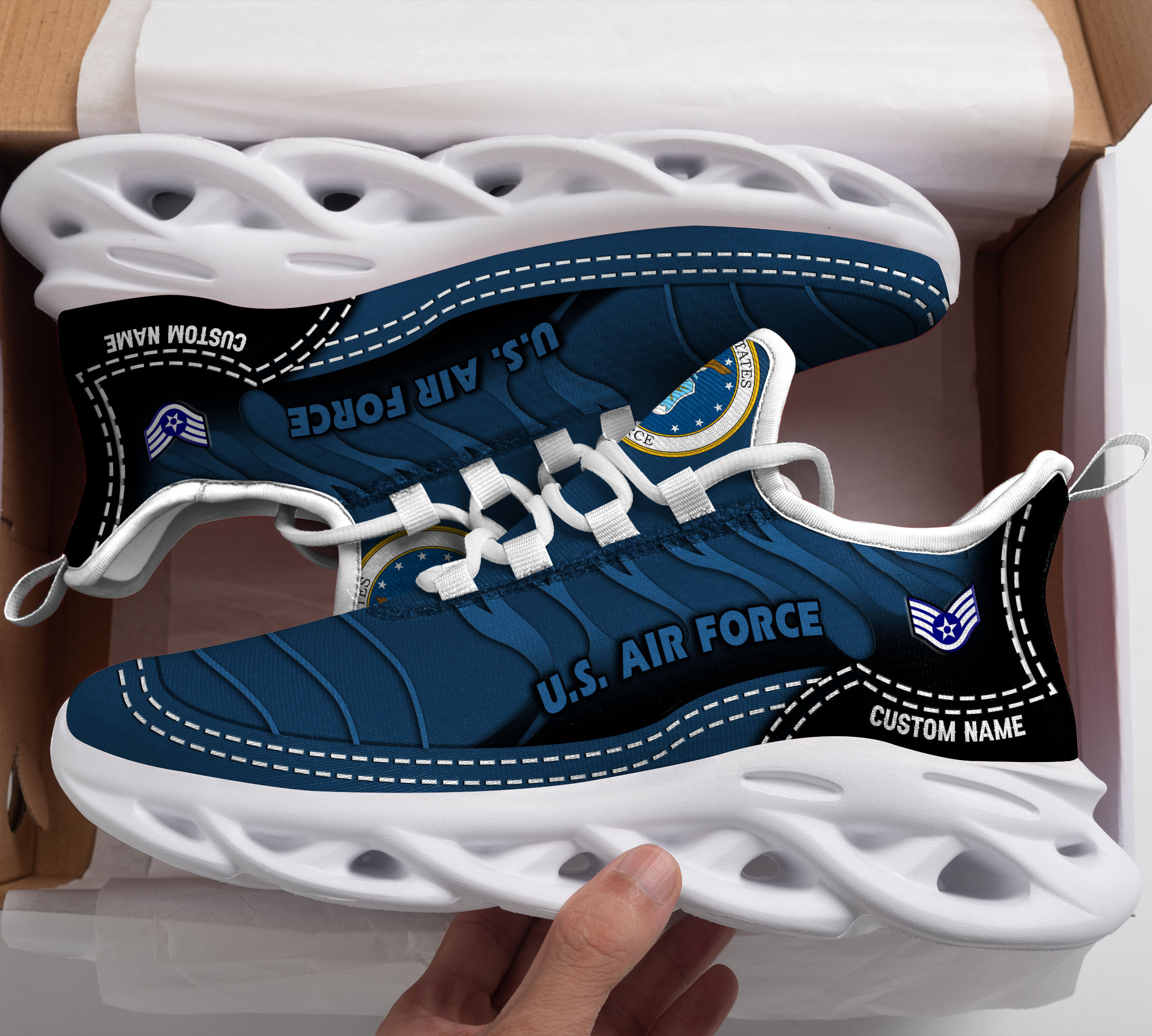 US Air Force Max Soul Shoes Sneakers Printed White And Black Sole For Men And Women