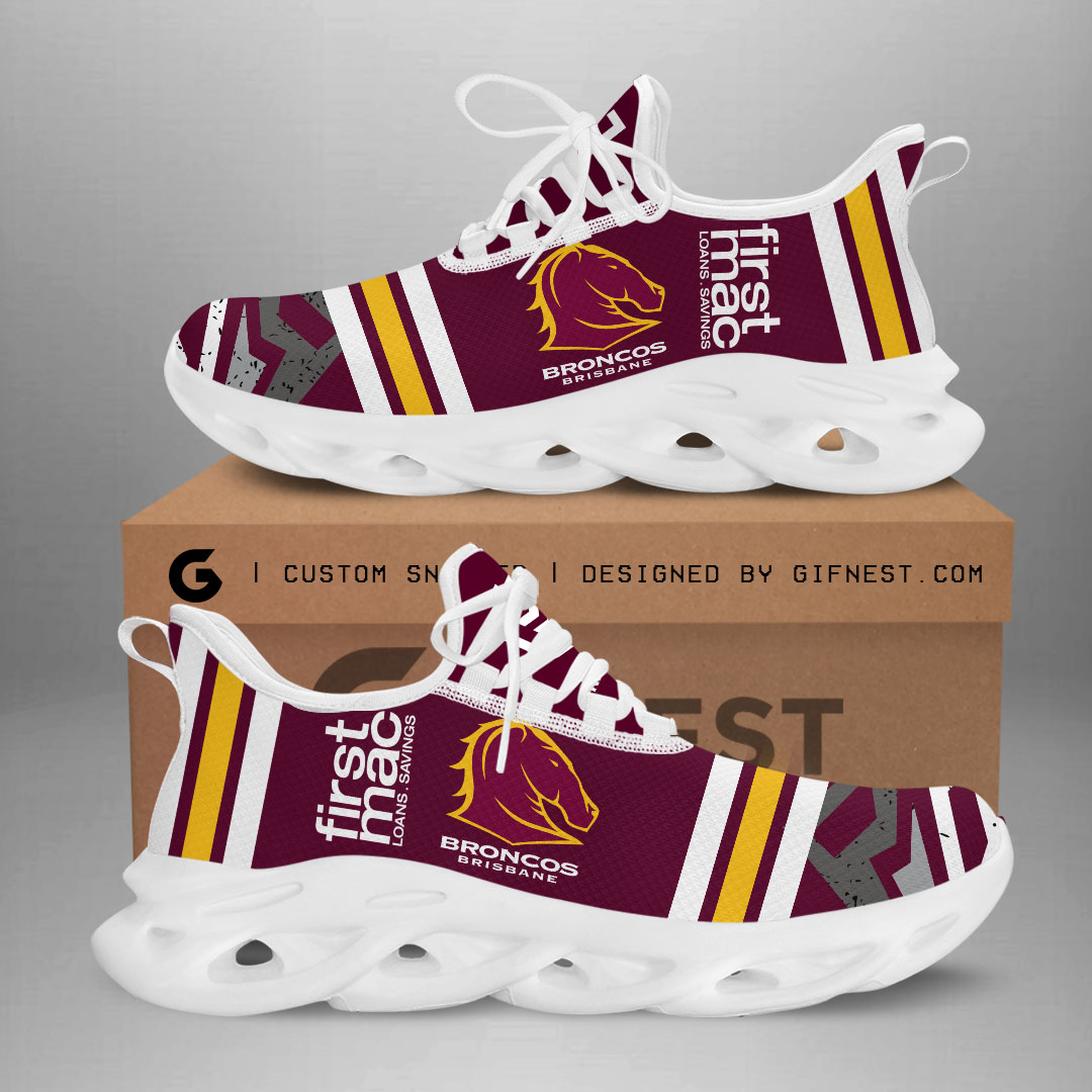 Brisbane Broncos Max Soul Shoes Sneakers Printed White And Black Sole For Men And Women
