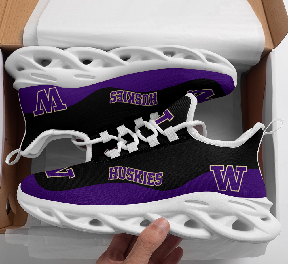 Washington Huskies Max Soul Shoes Sneakers Printed White And Black Sole For Men And Women