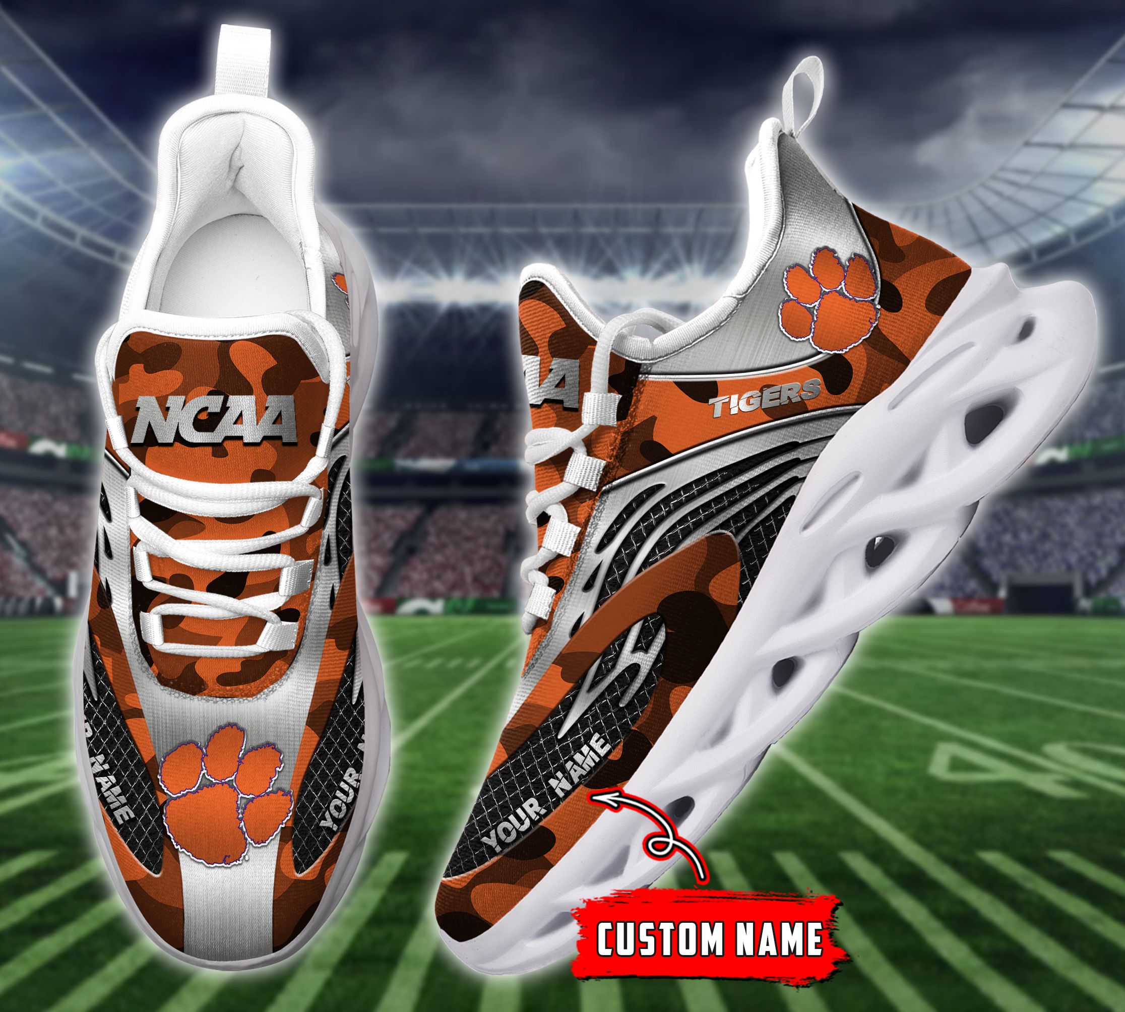 Clemson Tigers NCAA Max Soul Shoes Sneakers Printed White And Black Sole For Men And Women