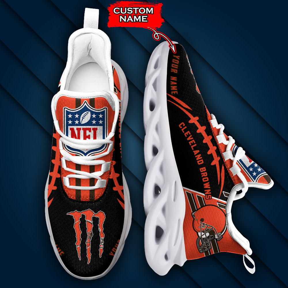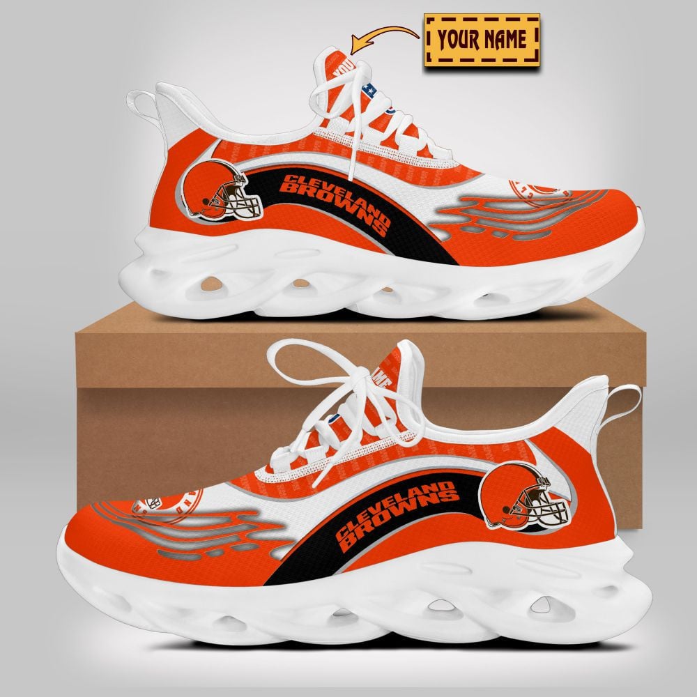 Cleveland Browns NFL Max Soul Shoes Sneakers Printed White And Black Sole For Men And Women