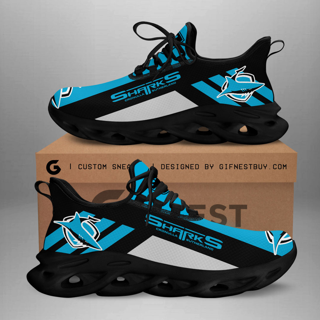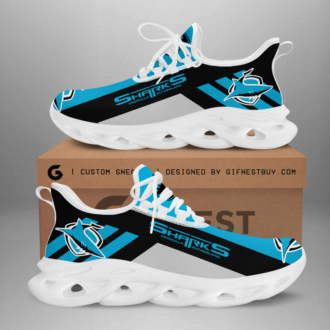 Cronulla-Sutherland Sharks Max Soul Shoes Sneakers Printed White And Black Sole For Men And Women