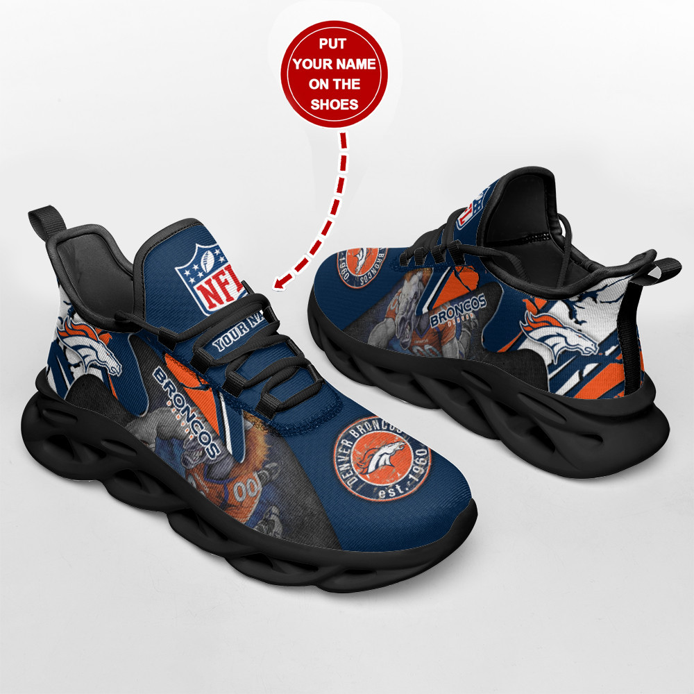 Denver Broncos NFL Max Soul Shoes Sneakers Printed White And Black Sole For Men And Women