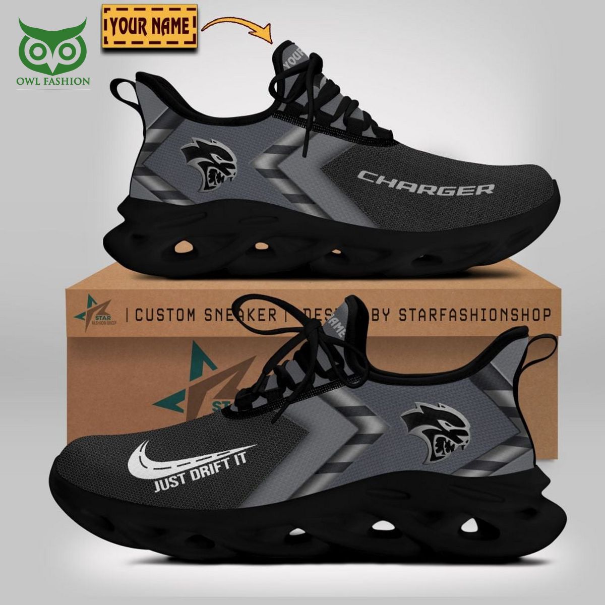 Dodge Charger Famous Motor Brand Max Soul Shoes Sneakers Printed White And Black Sole For Men And Women