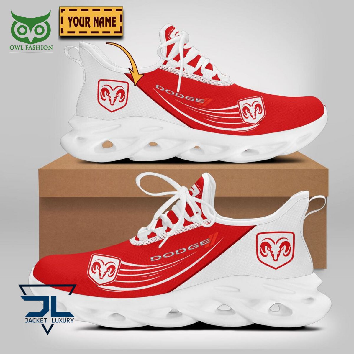 Dodge Car Brand Max Soul Shoes Sneakers Printed White And Black Sole For Men And Women