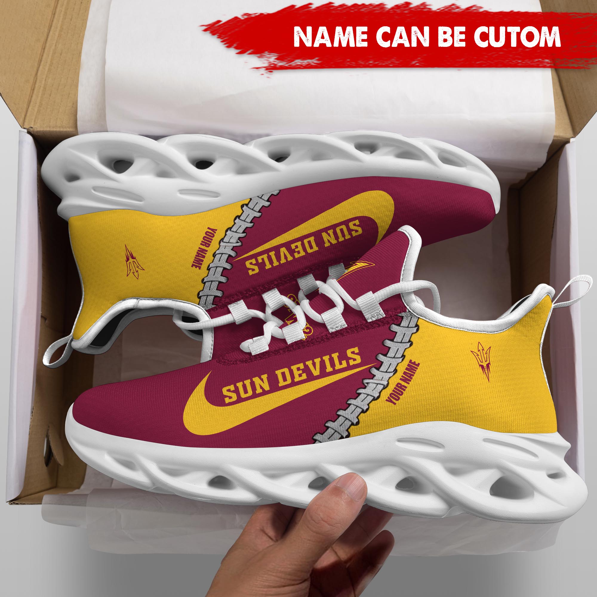 Arizona State Sun Devils Max Soul Shoes Sneakers Printed White And Black Sole For Men And Women