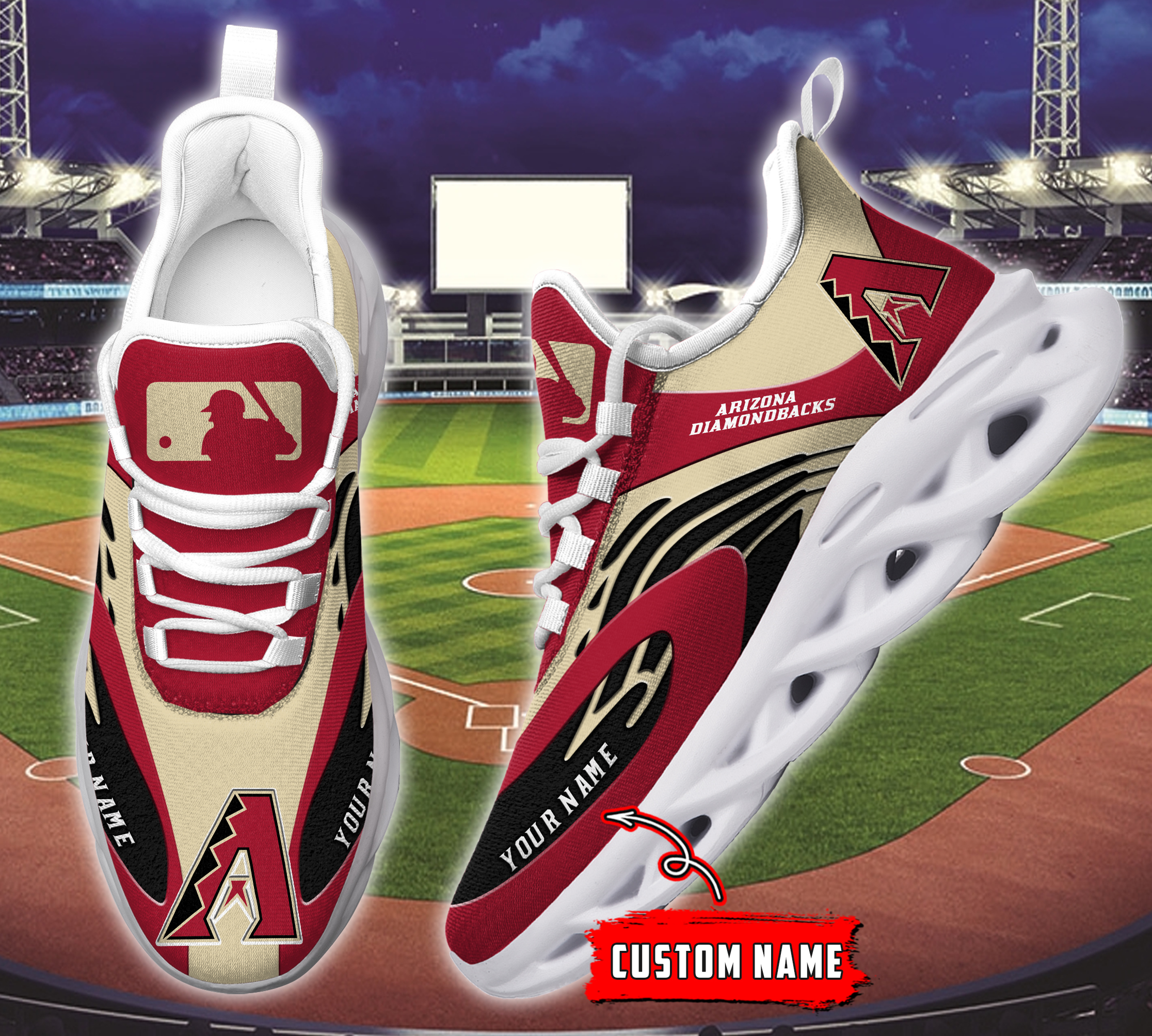 Arizona Diamondbacks MLB Max Soul Shoes Sneakers Printed White And Black Sole For Men And Women
