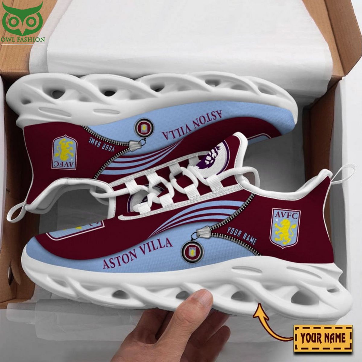 Aston Villa NCAA Max Soul Shoes Sneakers Printed White And Black Sole For Men And Women