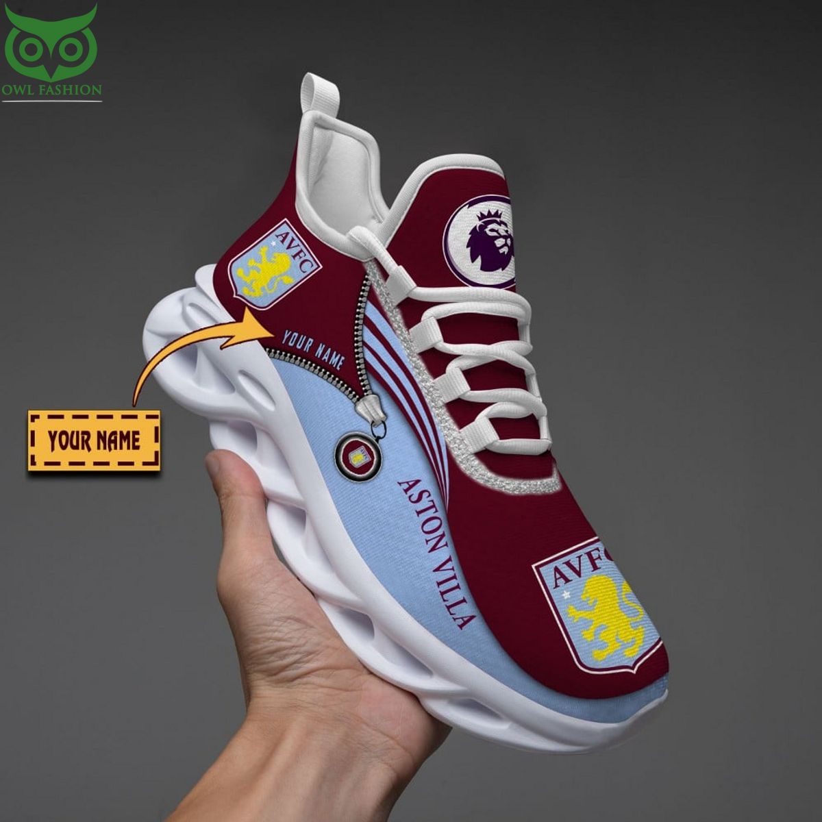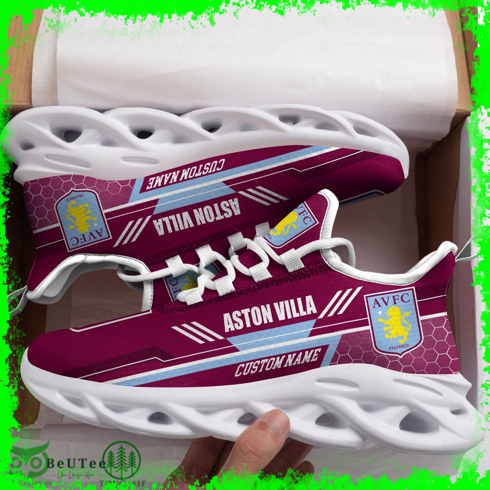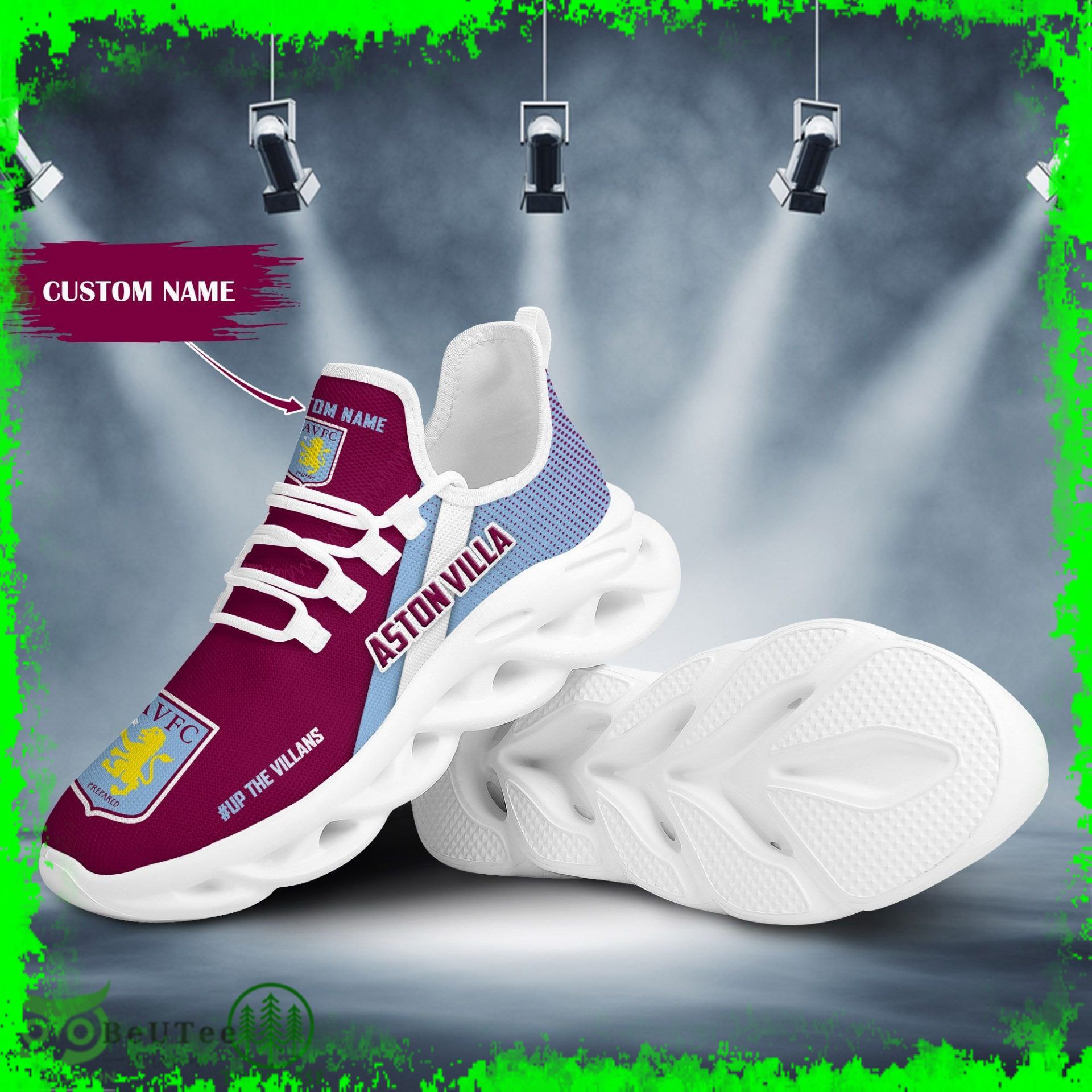Aston Villa F.C Max Soul Shoes Sneakers Printed White And Black Sole For Men And Women