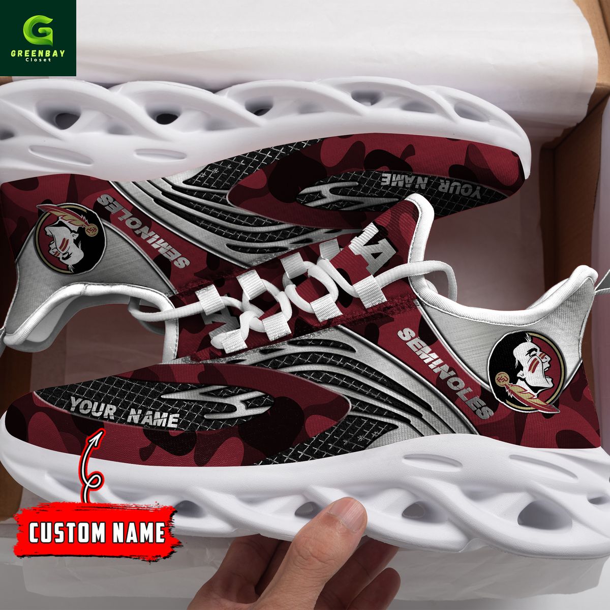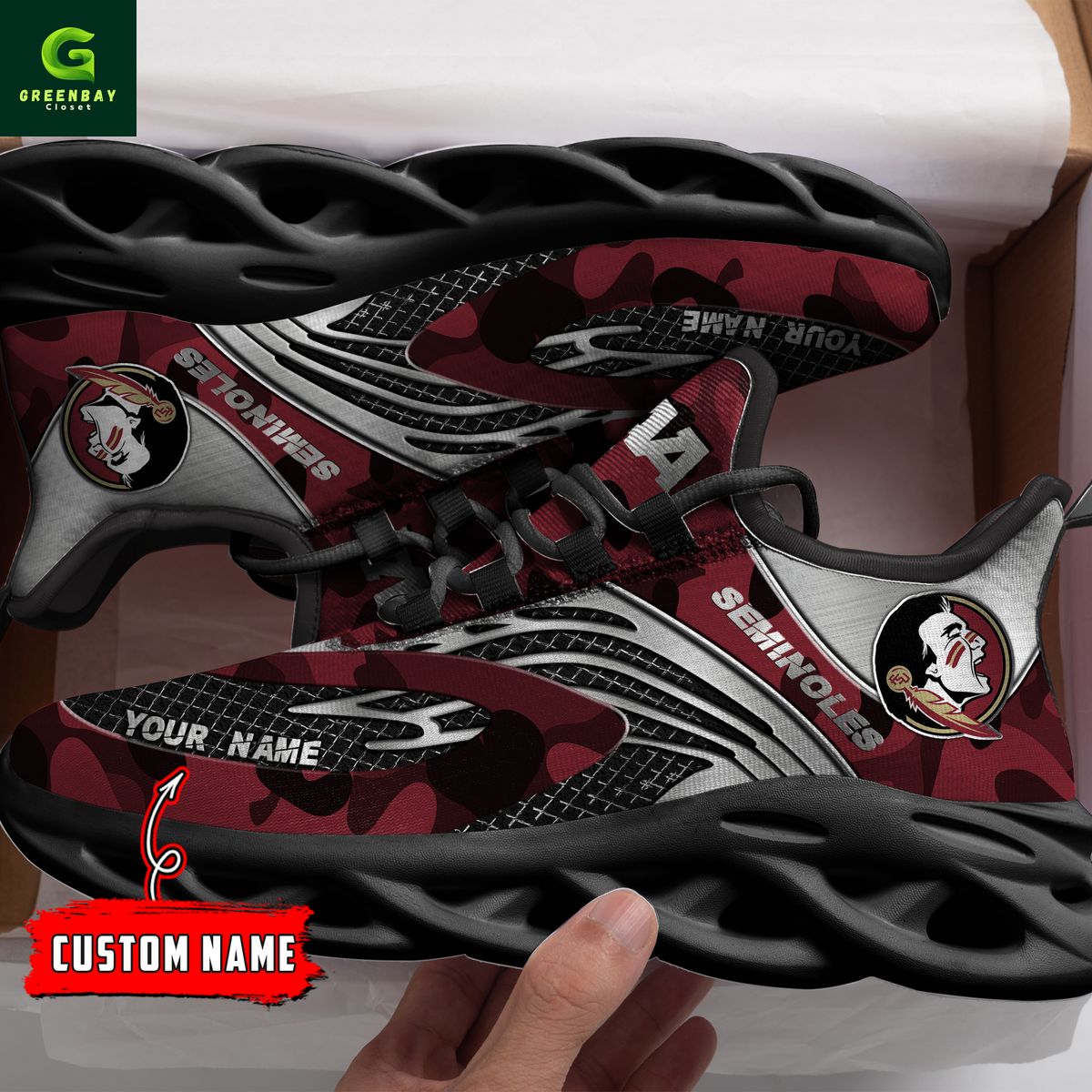Florida State Red & Silver Seminoles Red Max Soul Shoes Sneakers Printed White And Black Sole For Men And Women