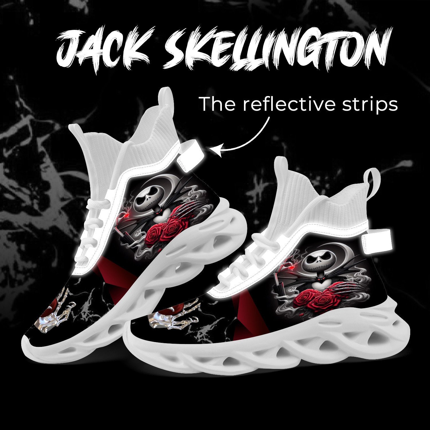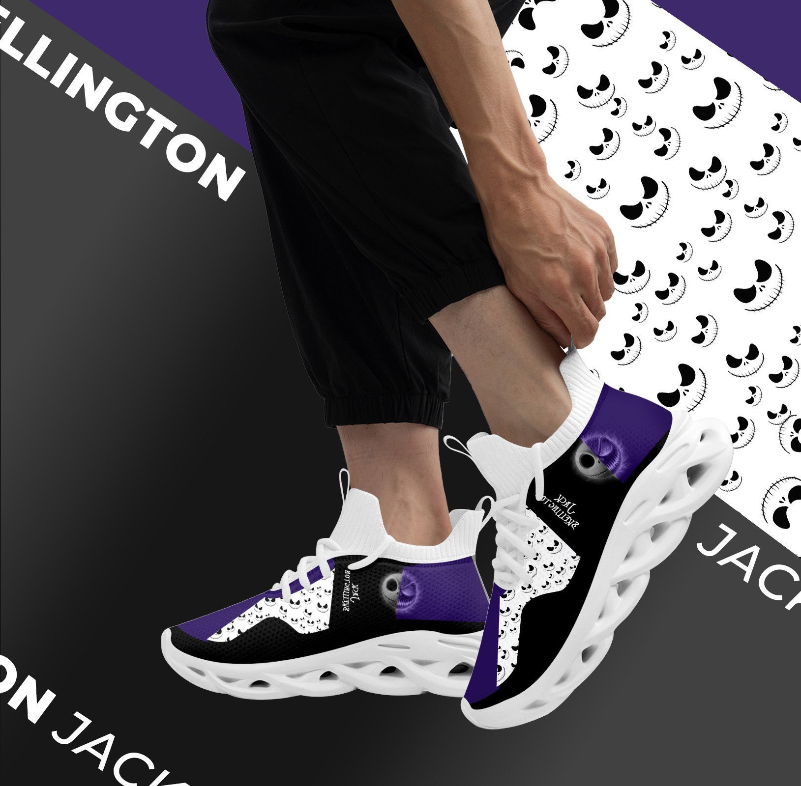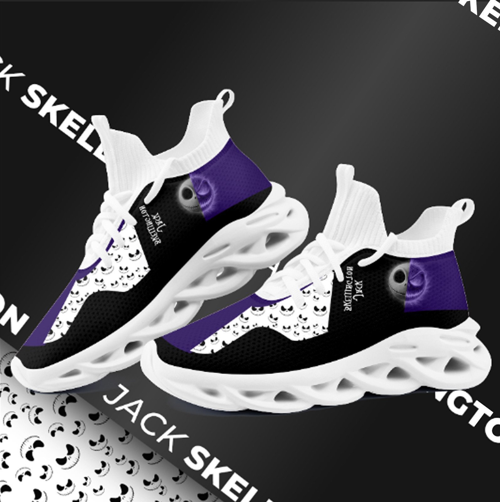 Jack Skellington High Max Soul Shoes Sneakers Printed White And Black Sole For Men And Women