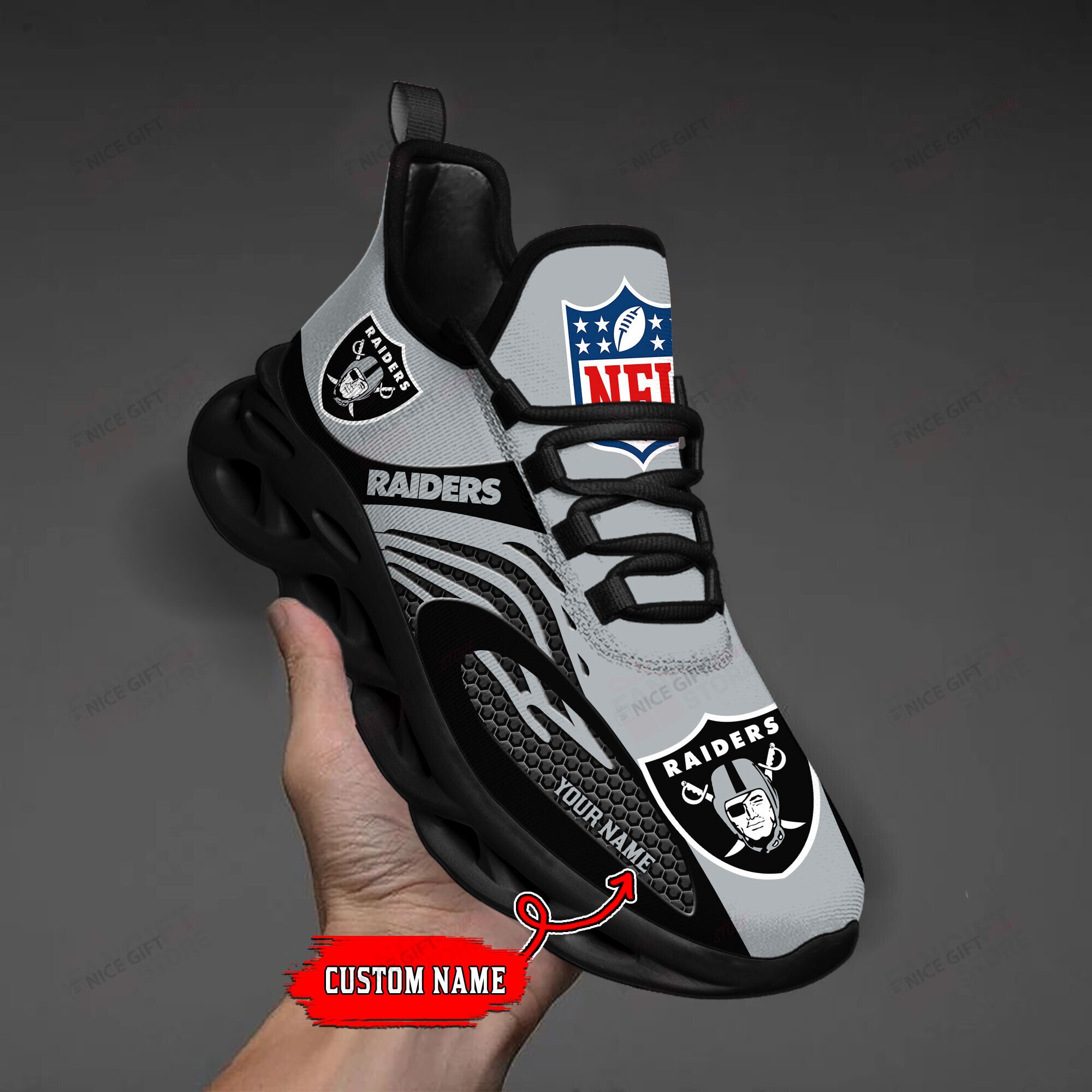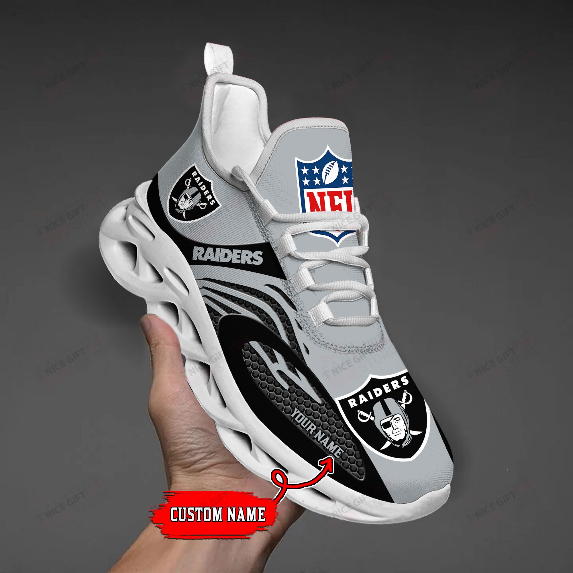 Las Vegas Raiders Max Soul Shoes Sneakers Printed White And Black Sole For Men And Women