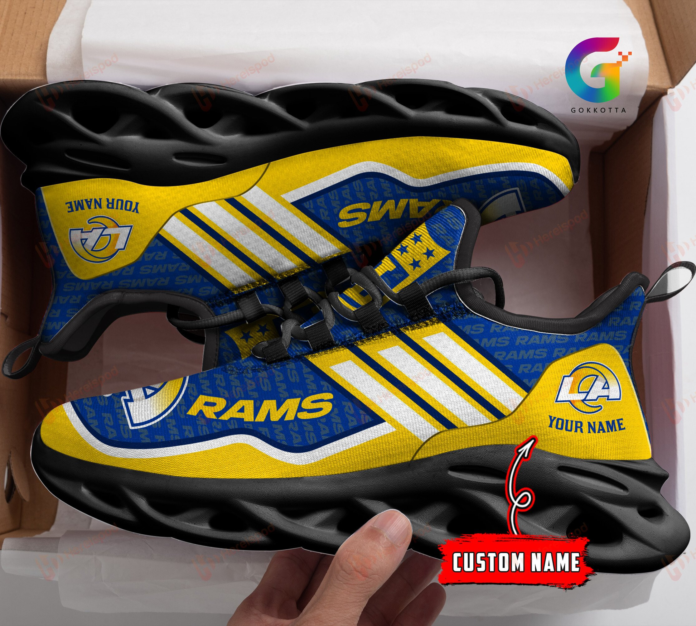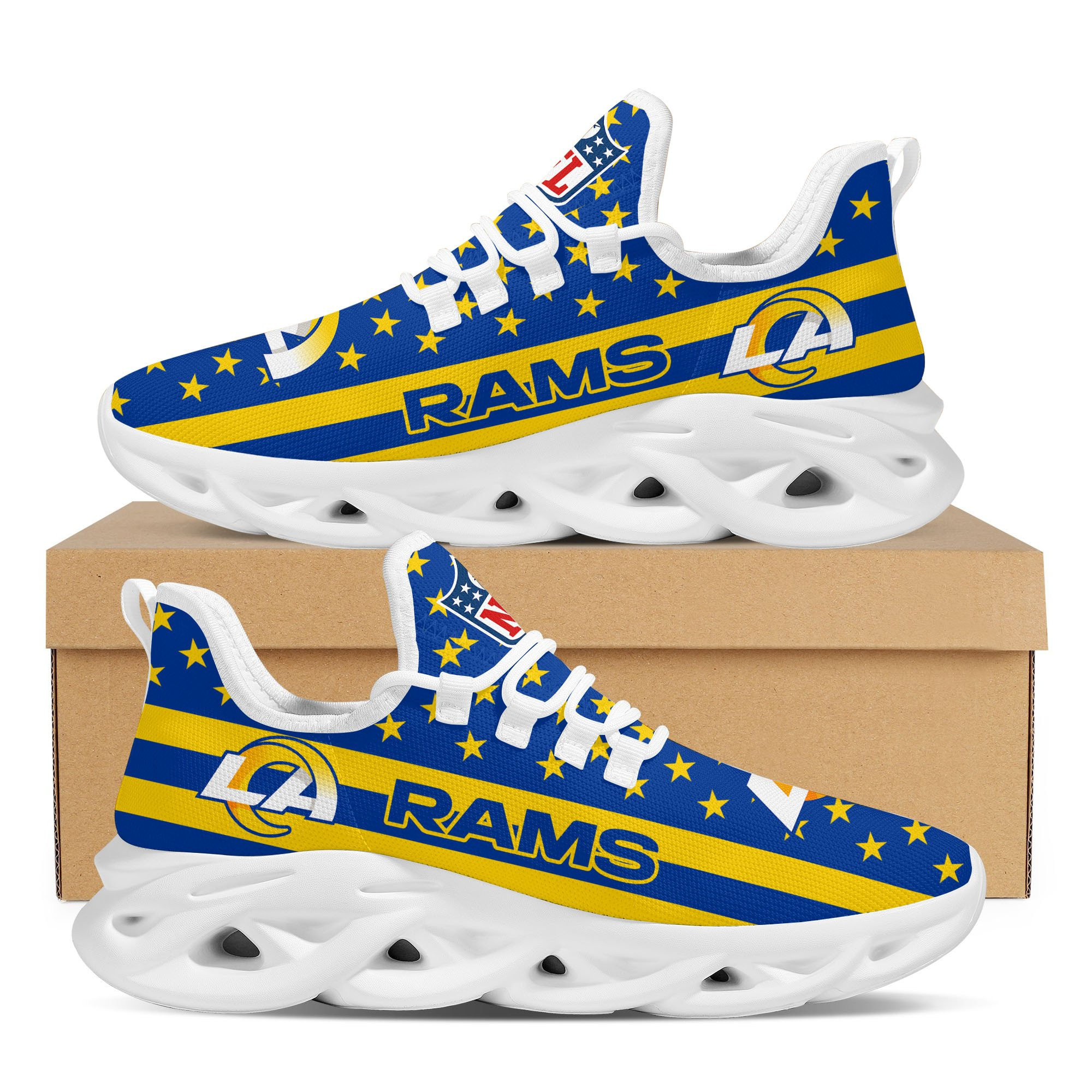 Los Angeles Rams NFL Max Soul Shoes Sneakers Printed White And Black Sole For Men And Women