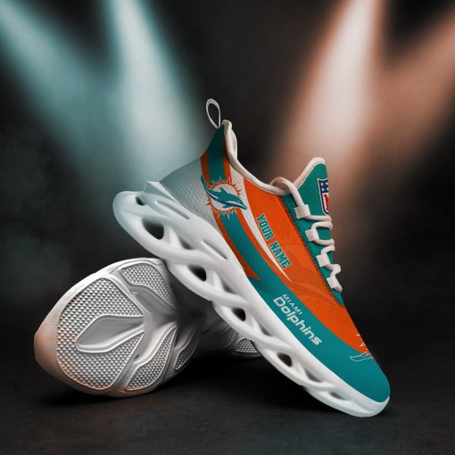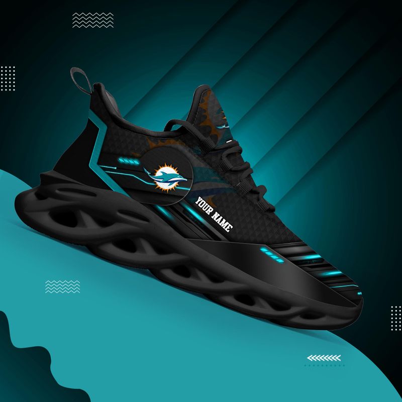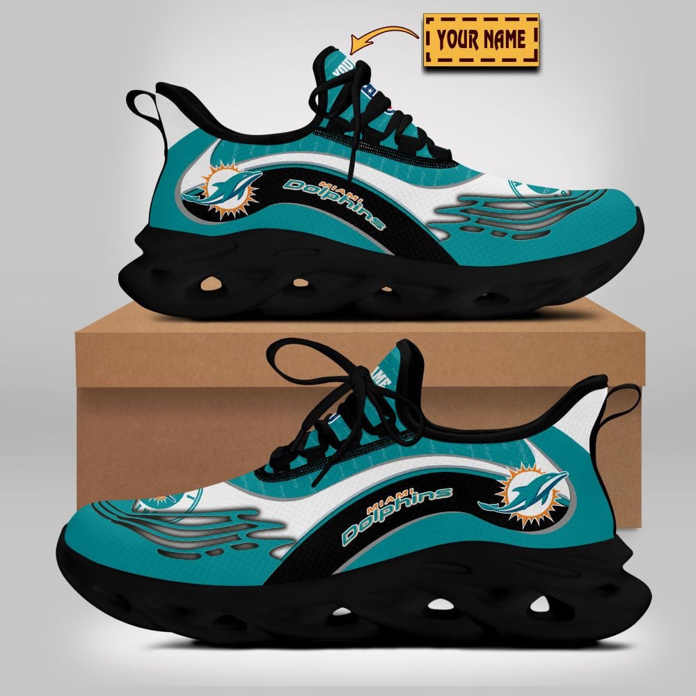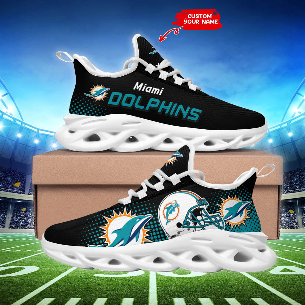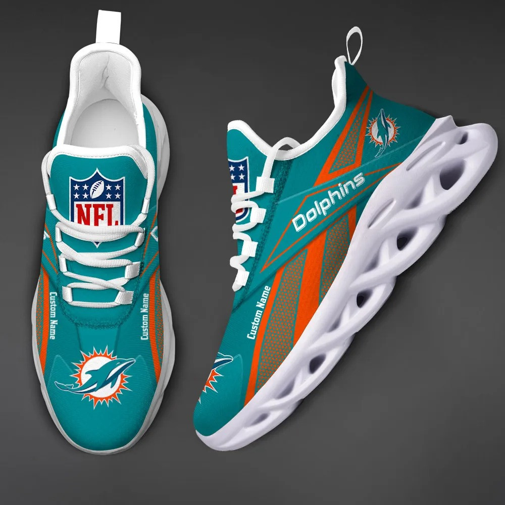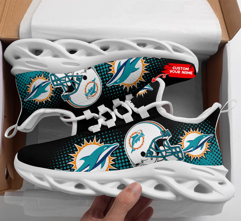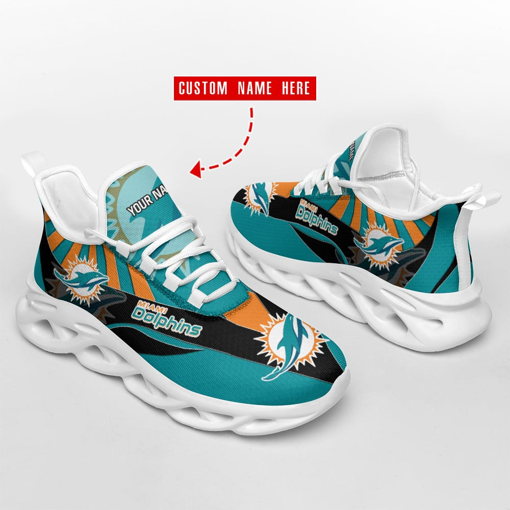 Miami Dolphins NFL Max Soul Shoes Sneakers Printed White And Black Sole For Men And Women