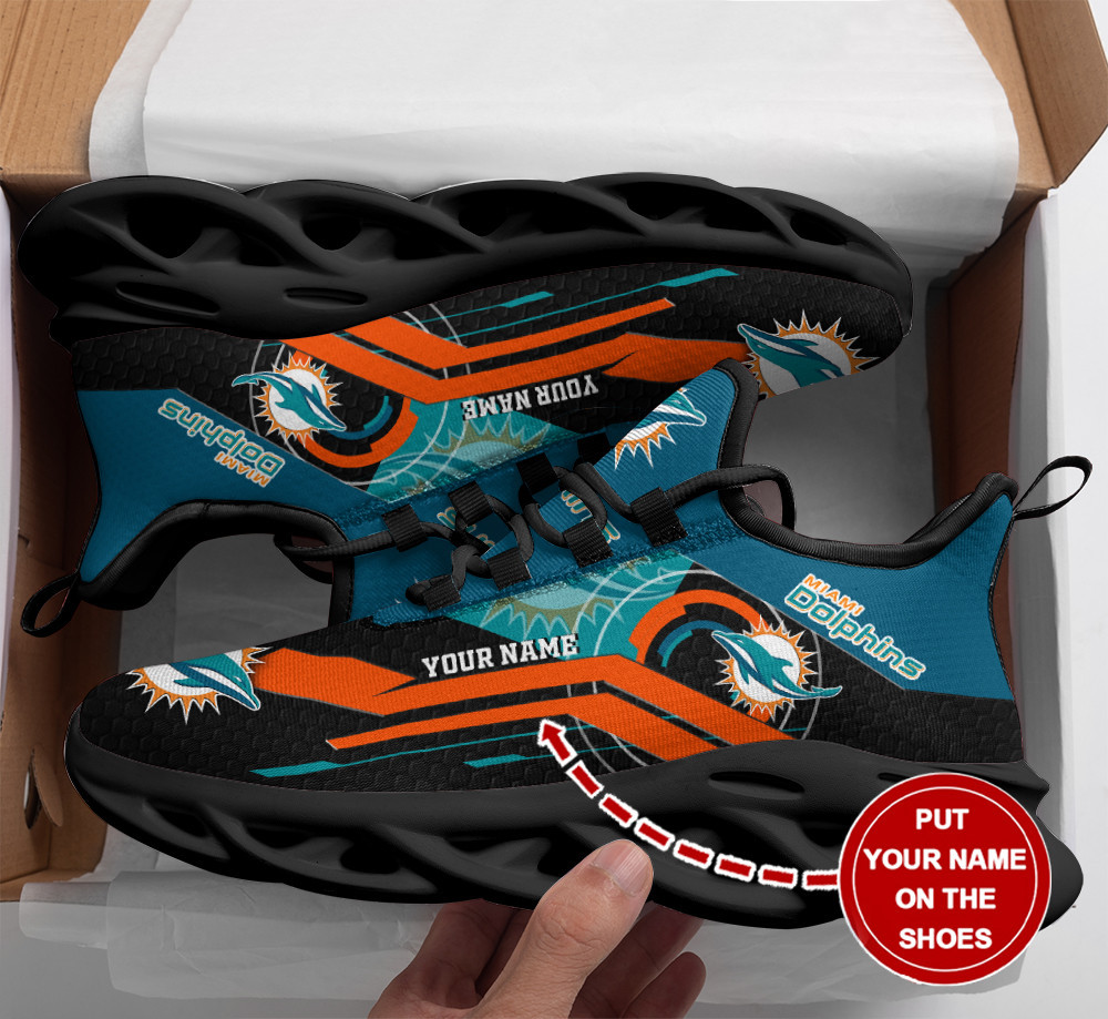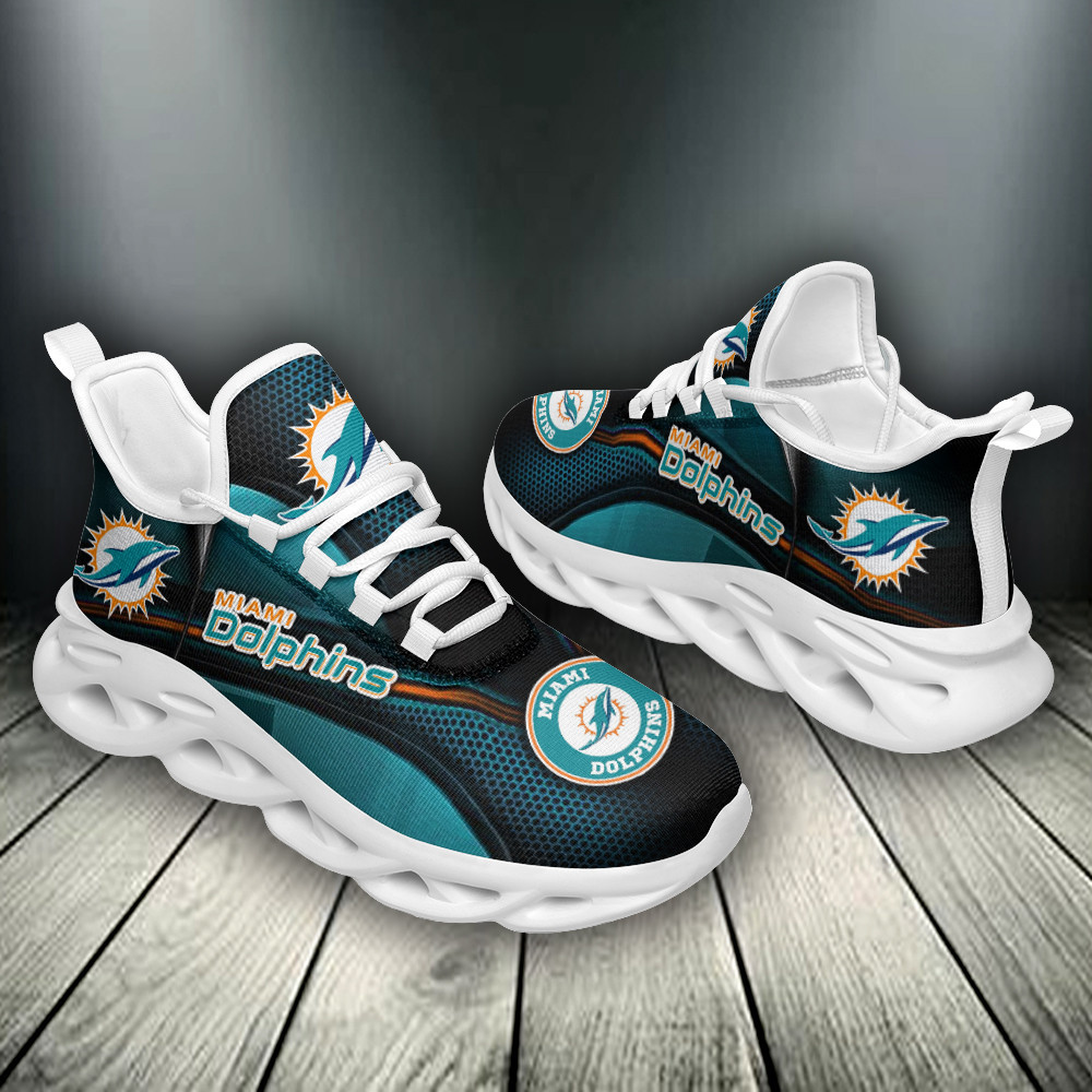 Miami Dolphins NFL Max Soul Shoes Sneakers Printed White And Black Sole For Men And Women