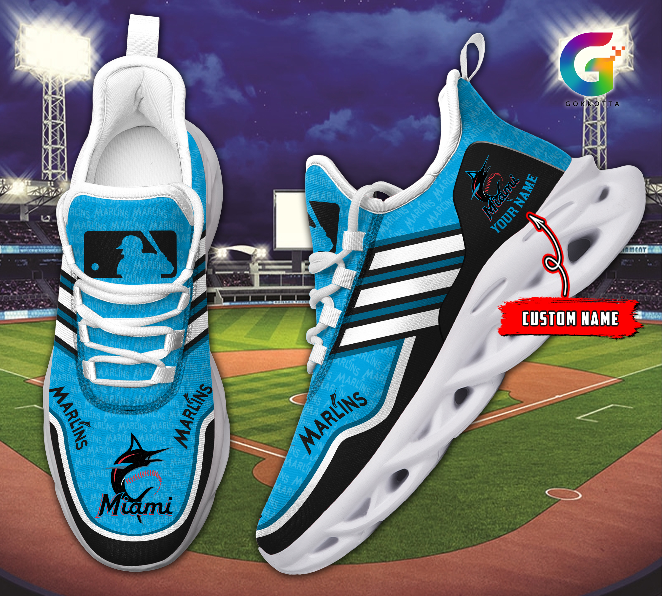 Miami Marlins MLB Max Soul Shoes Sneakers Printed White And Black Sole For Men And Women