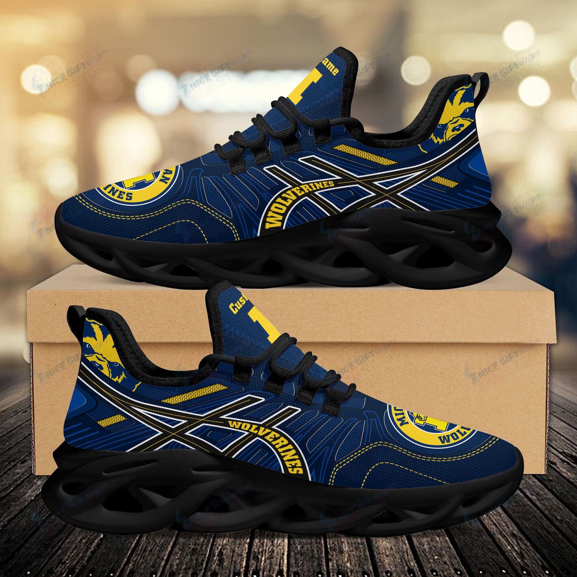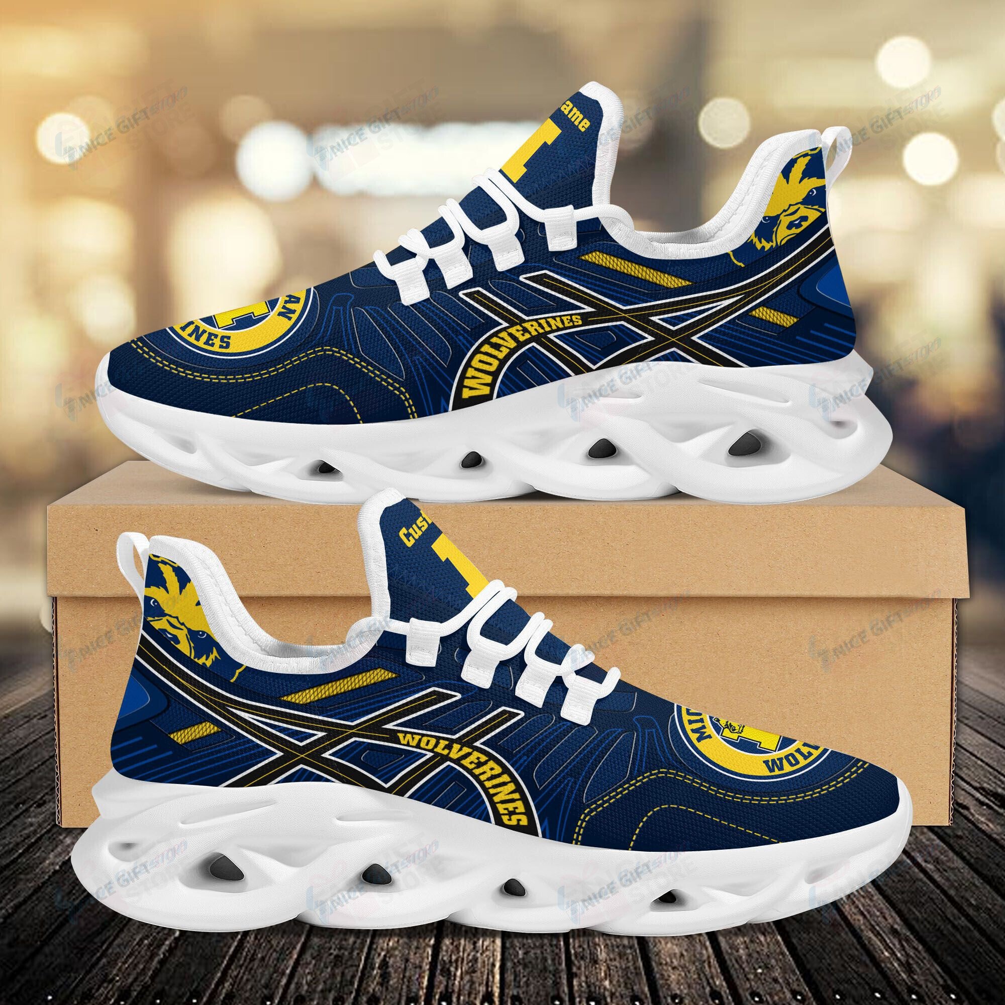 Michigan Wolverines Max Soul Shoes Sneakers Printed White And Black Sole For Men And Women