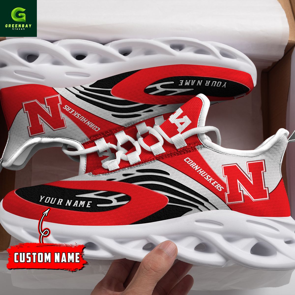 Nebraska Cornhuskers Max Soul Shoes Sneakers Printed White And Black Sole For Men And Women