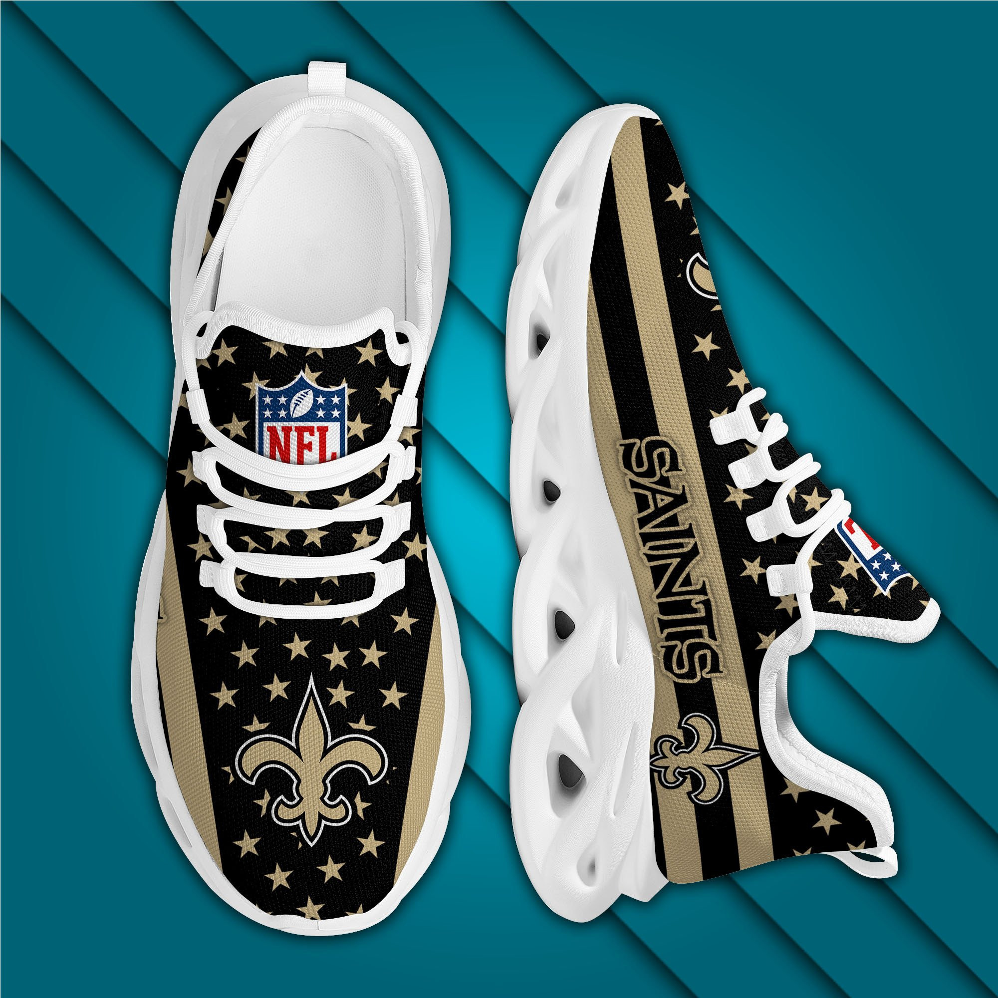 New Orleans Saints NFL Max Soul Shoes Sneakers Printed White And Black Sole For Men And Women