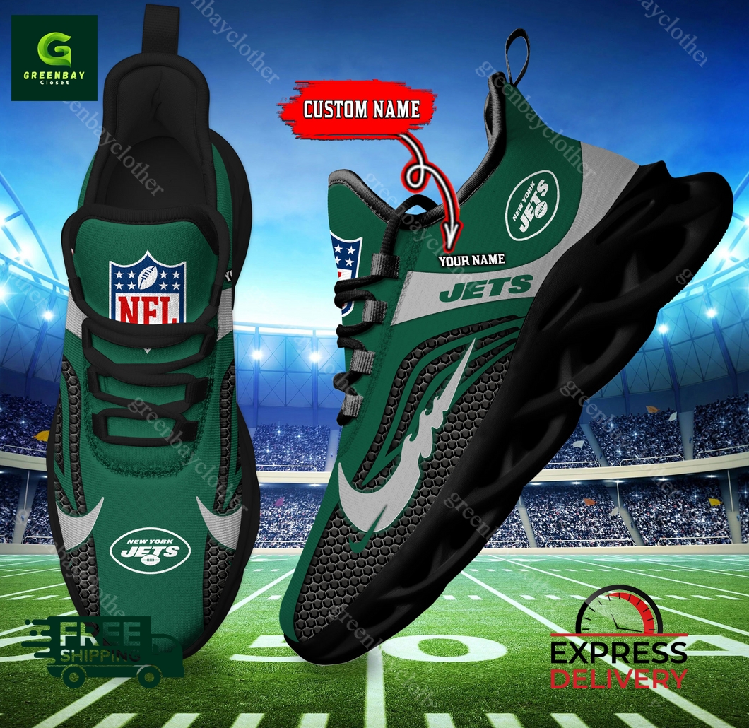 New York Jets Max Soul Shoes Sneakers Printed White And Black Sole For Men And Women