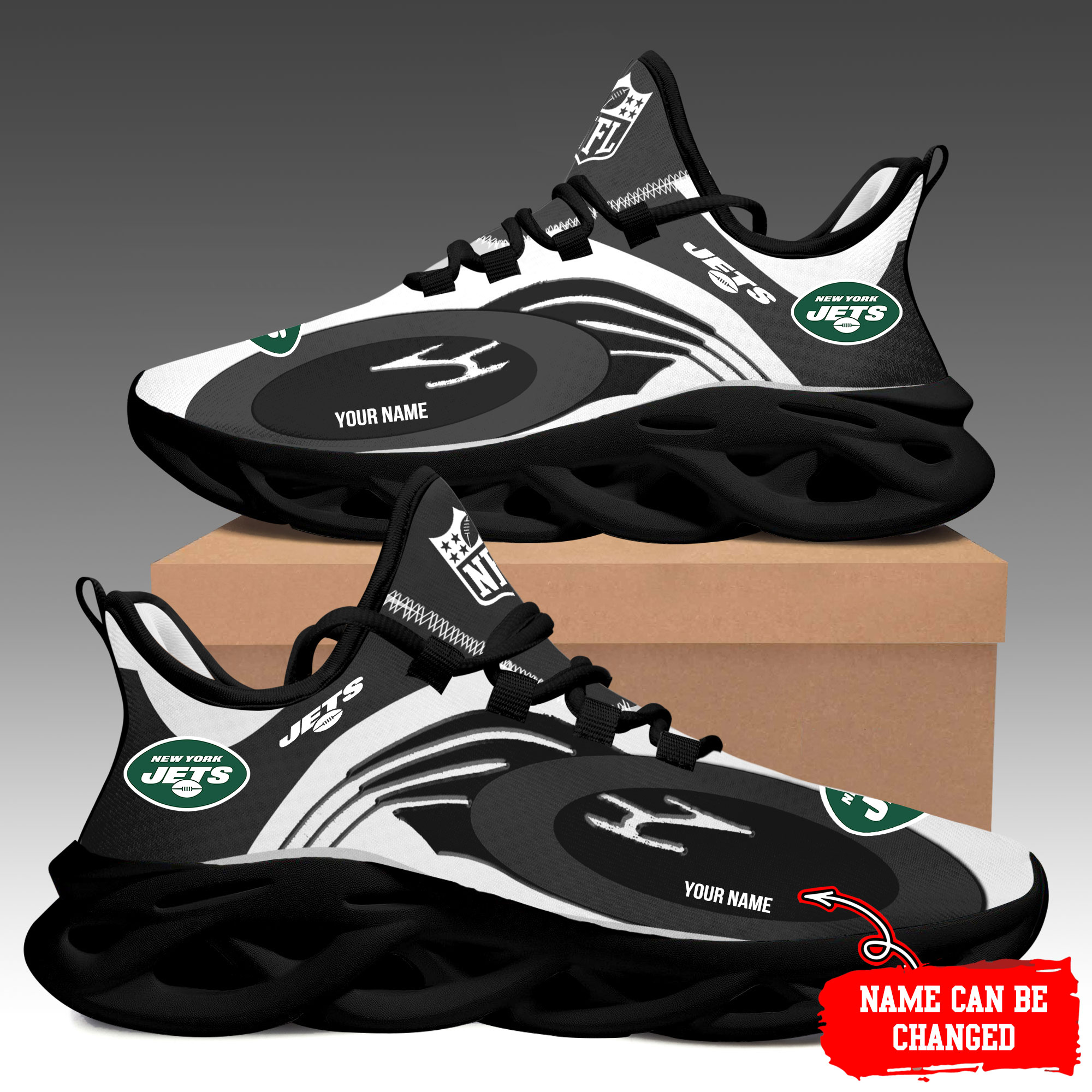 New York Jets Max Soul Shoes Sneakers Printed White And Black Sole For Men And Women