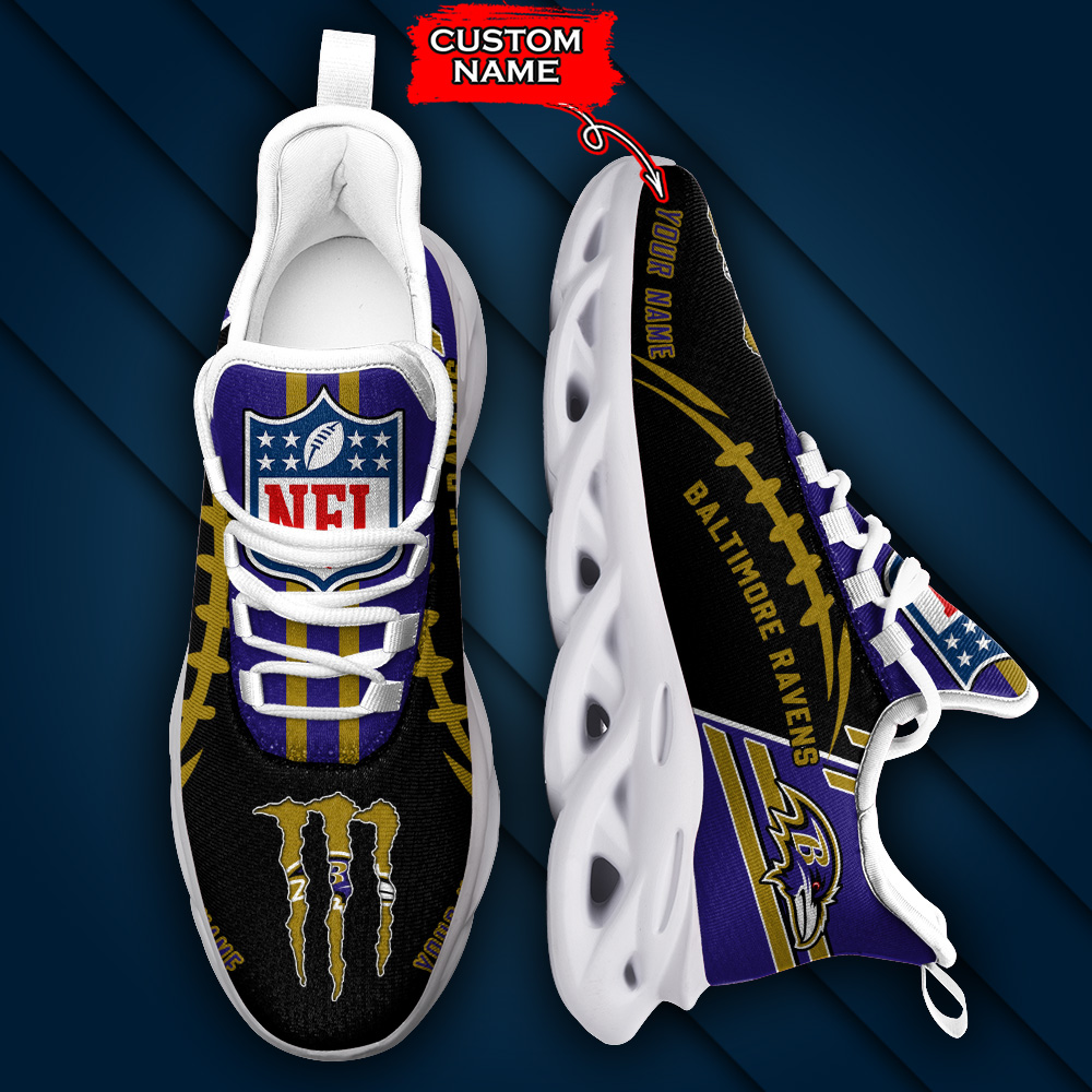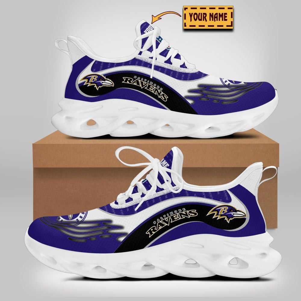 Baltimore Ravens NFL Max Soul Shoes Sneakers Printed White And Black Sole For Men And Women