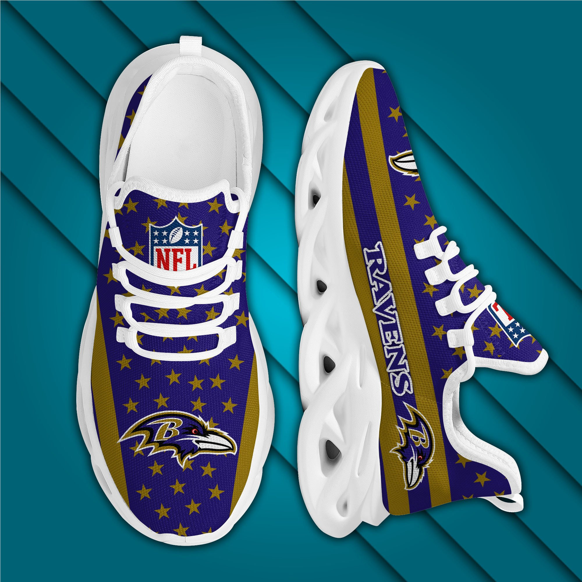 Baltimore Ravens NFL Max Soul Shoes Sneakers Printed White And Black Sole For Men And Women