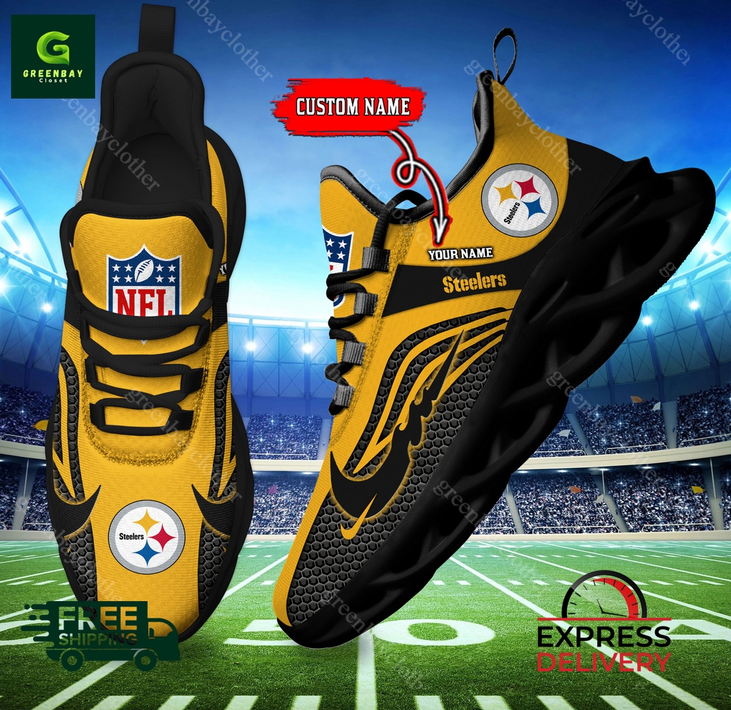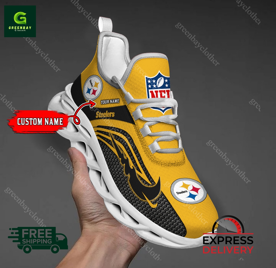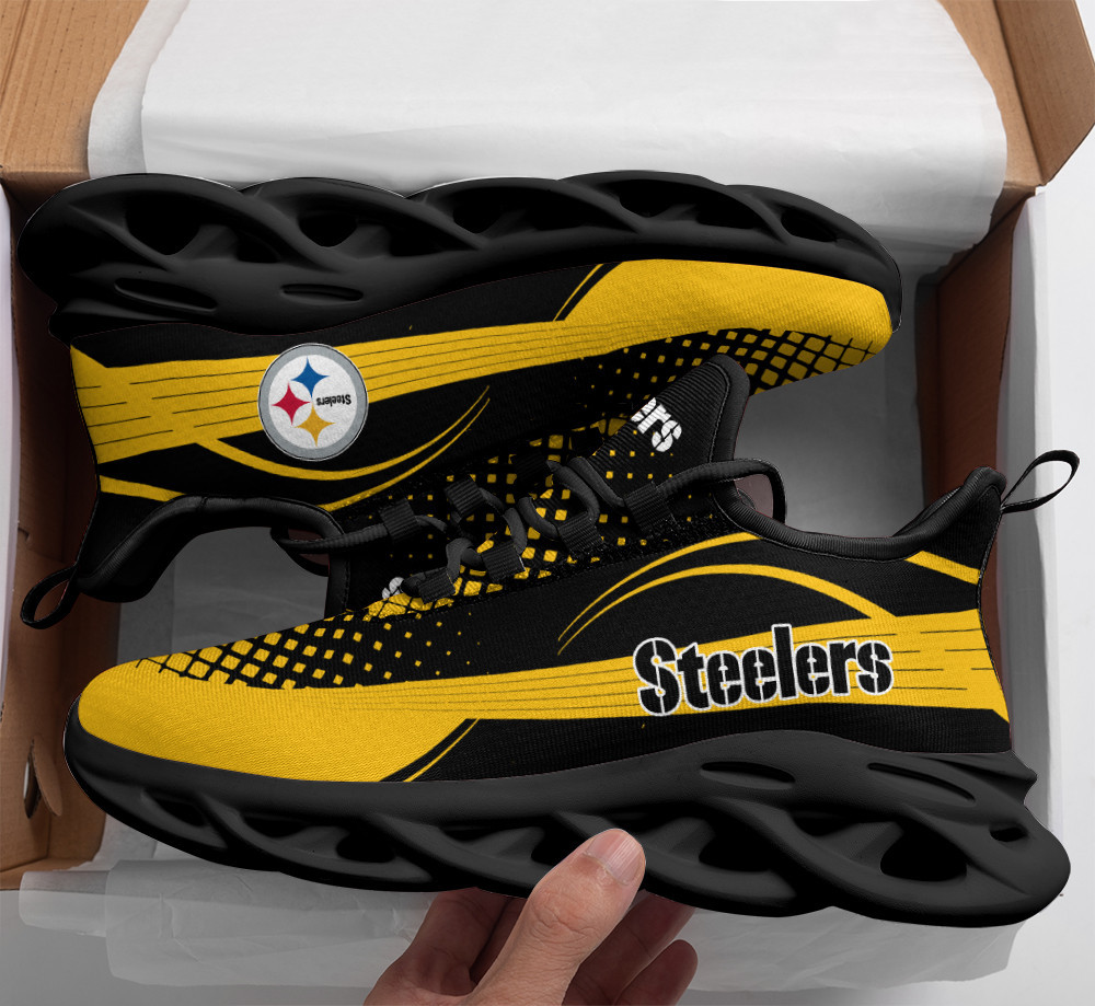 Pittsburgh Steelers Max Soul Shoes Sneakers Printed White And Black Sole For Men And Women