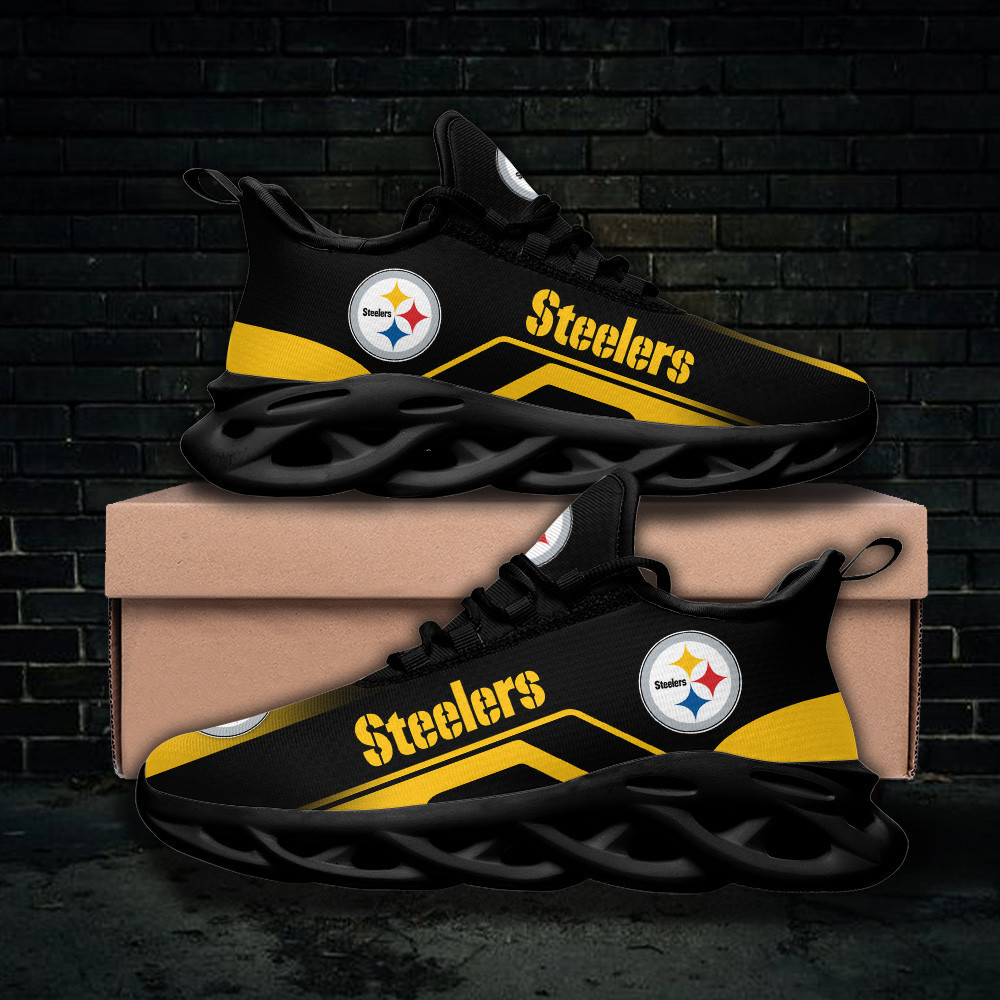 Pittsburgh Steelers NFL Max Soul Shoes Sneakers Printed White And Black Sole For Men And Women