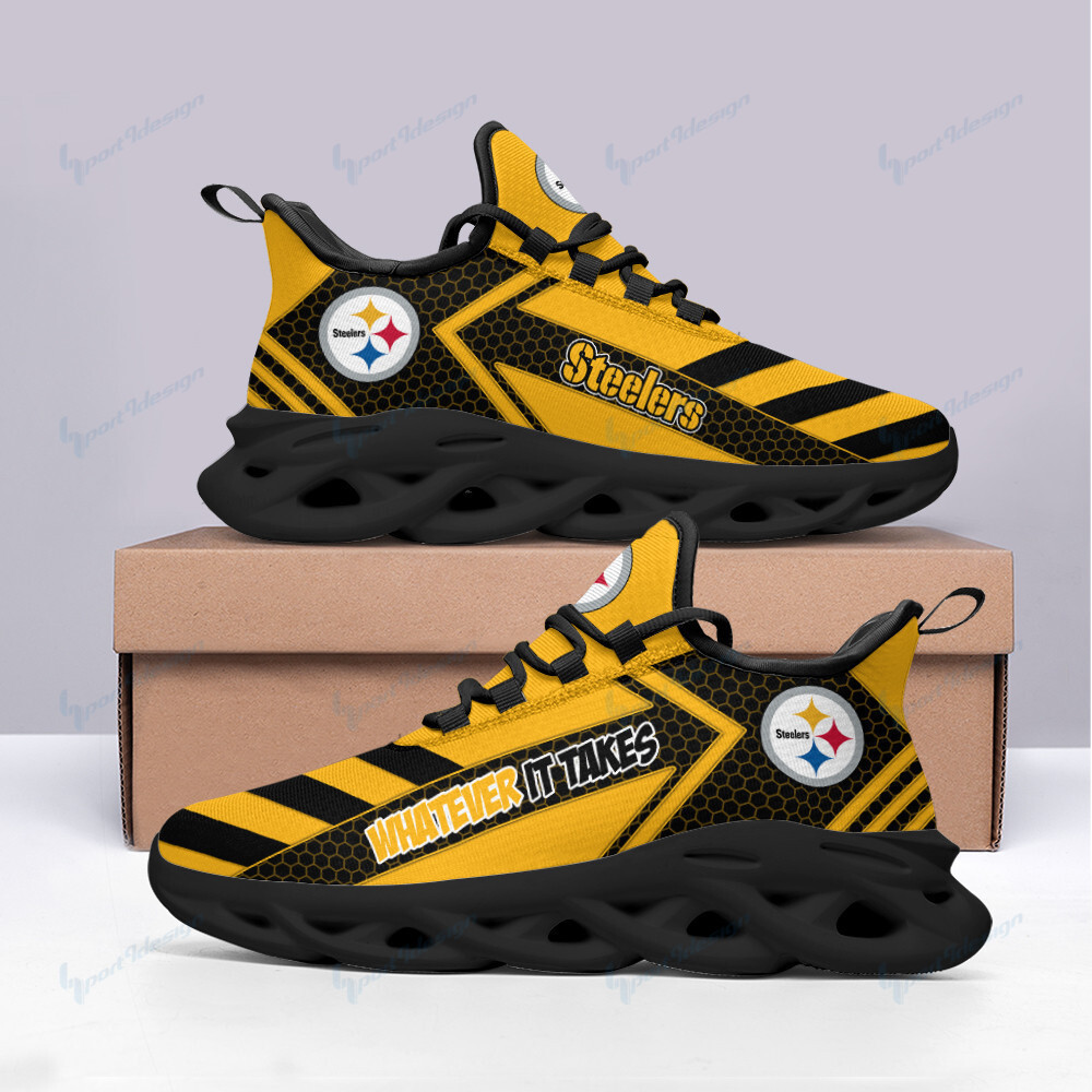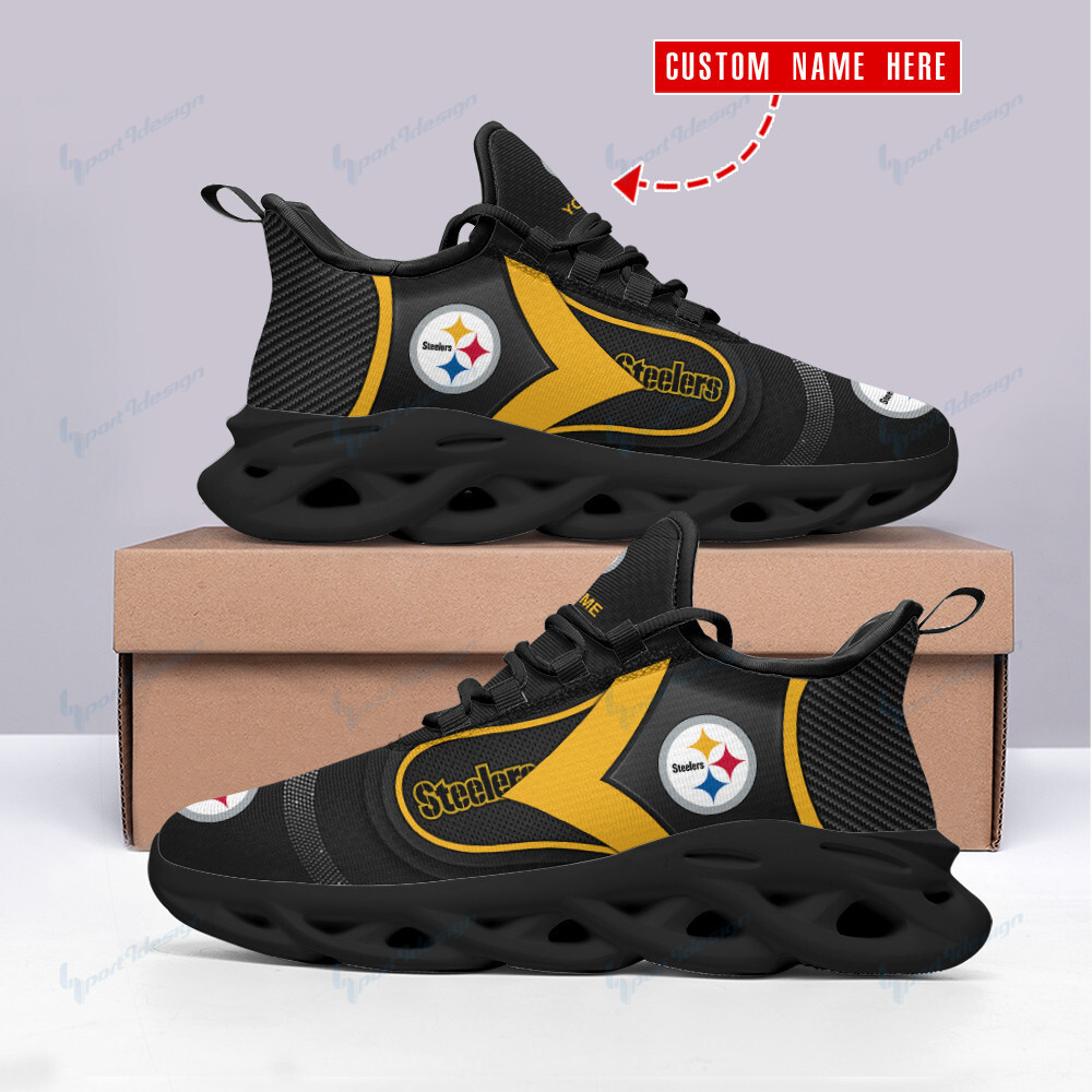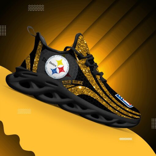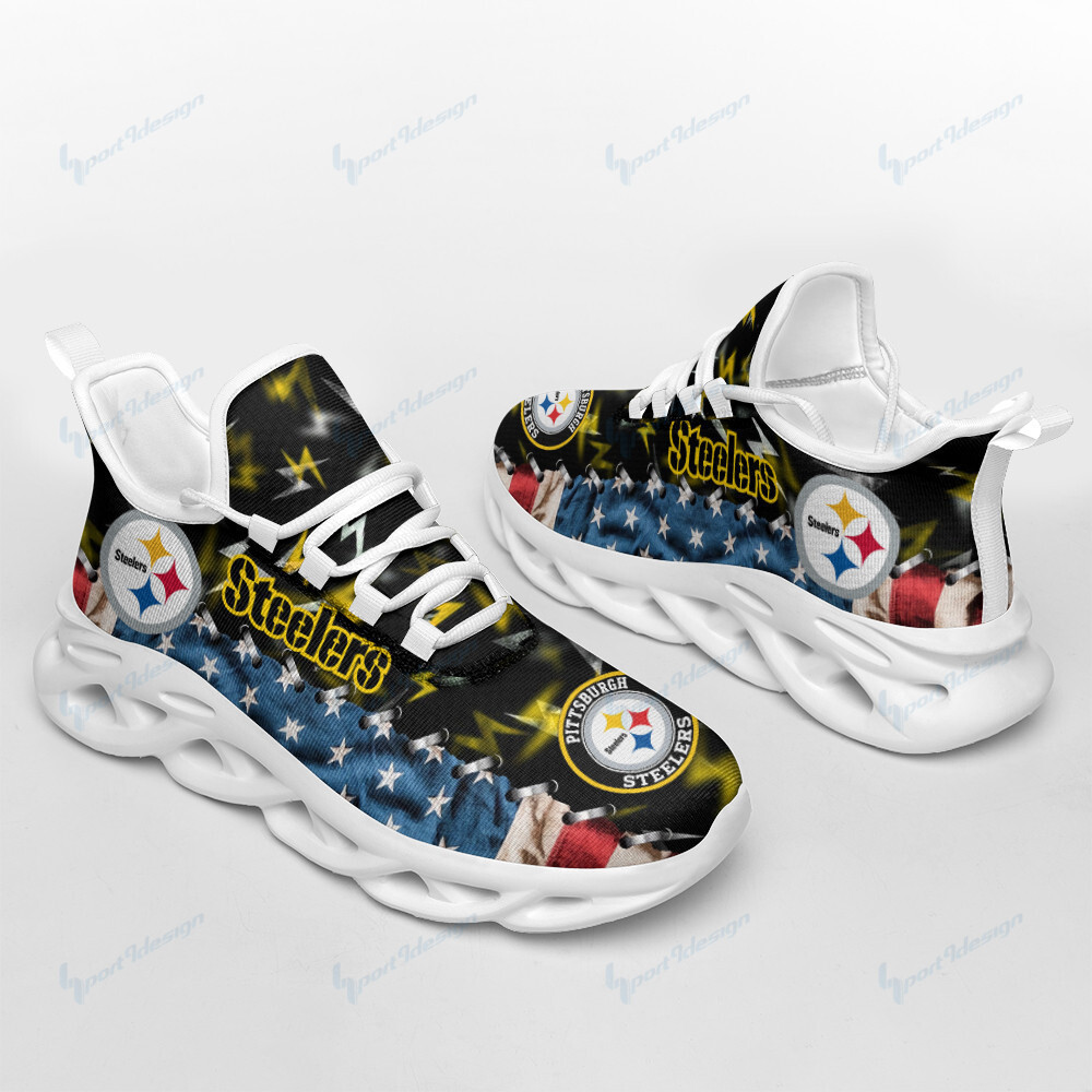 Pittsburgh Steelers NFL Max Soul Shoes Sneakers Printed White And Black Sole For Men And Women