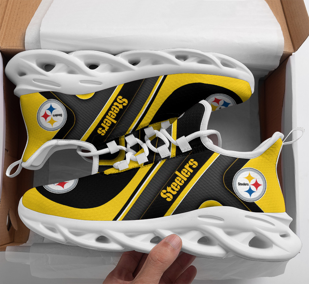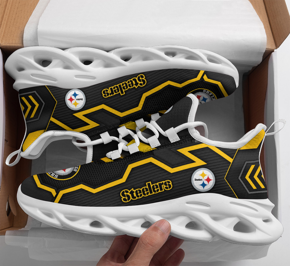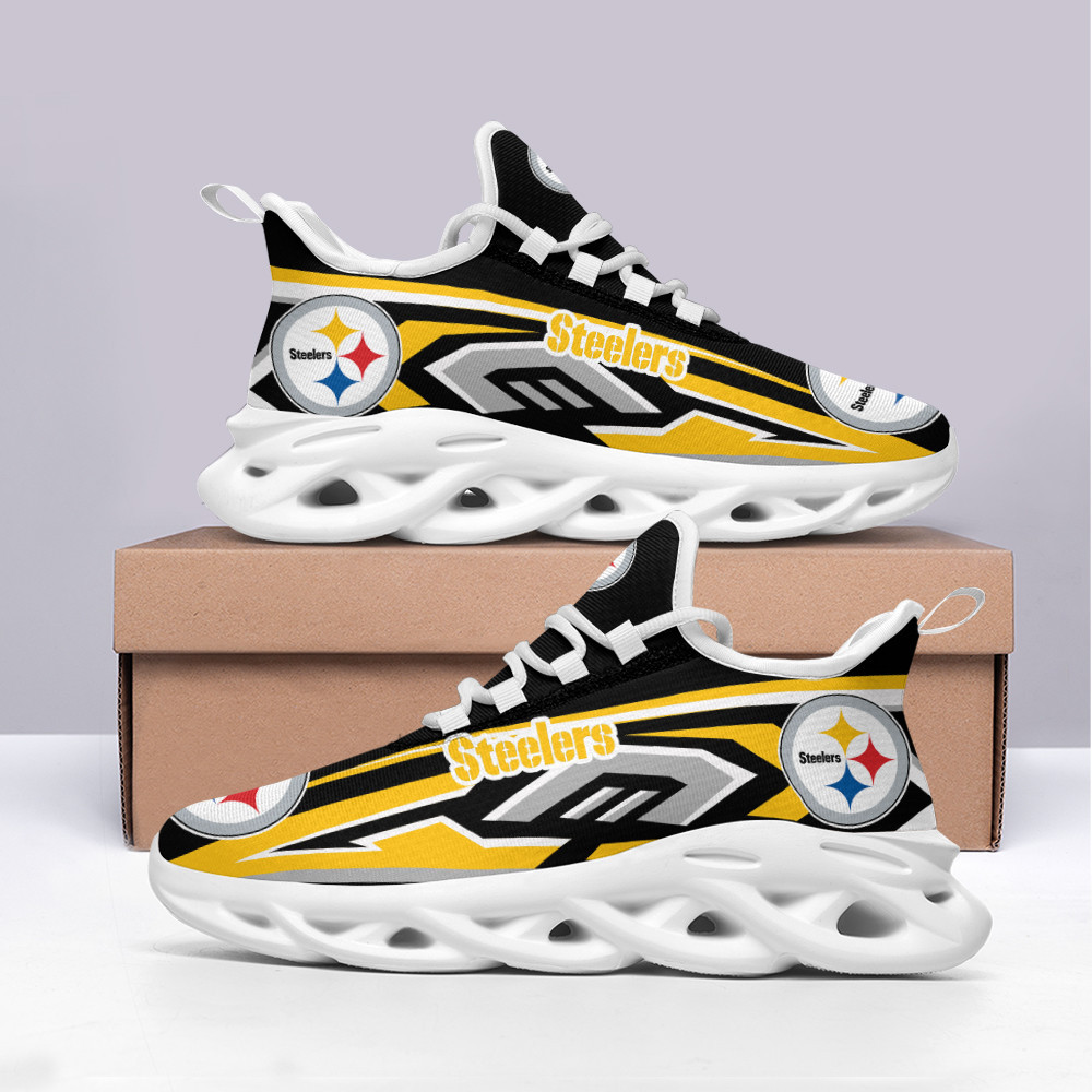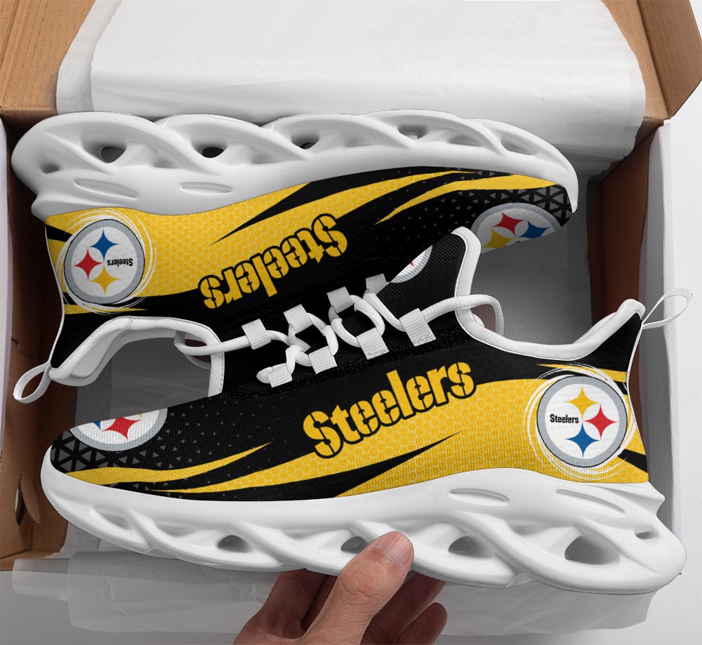 Pittsburgh Steelers NFL Max Soul Shoes Sneakers Printed White And Black Sole For Men And Women