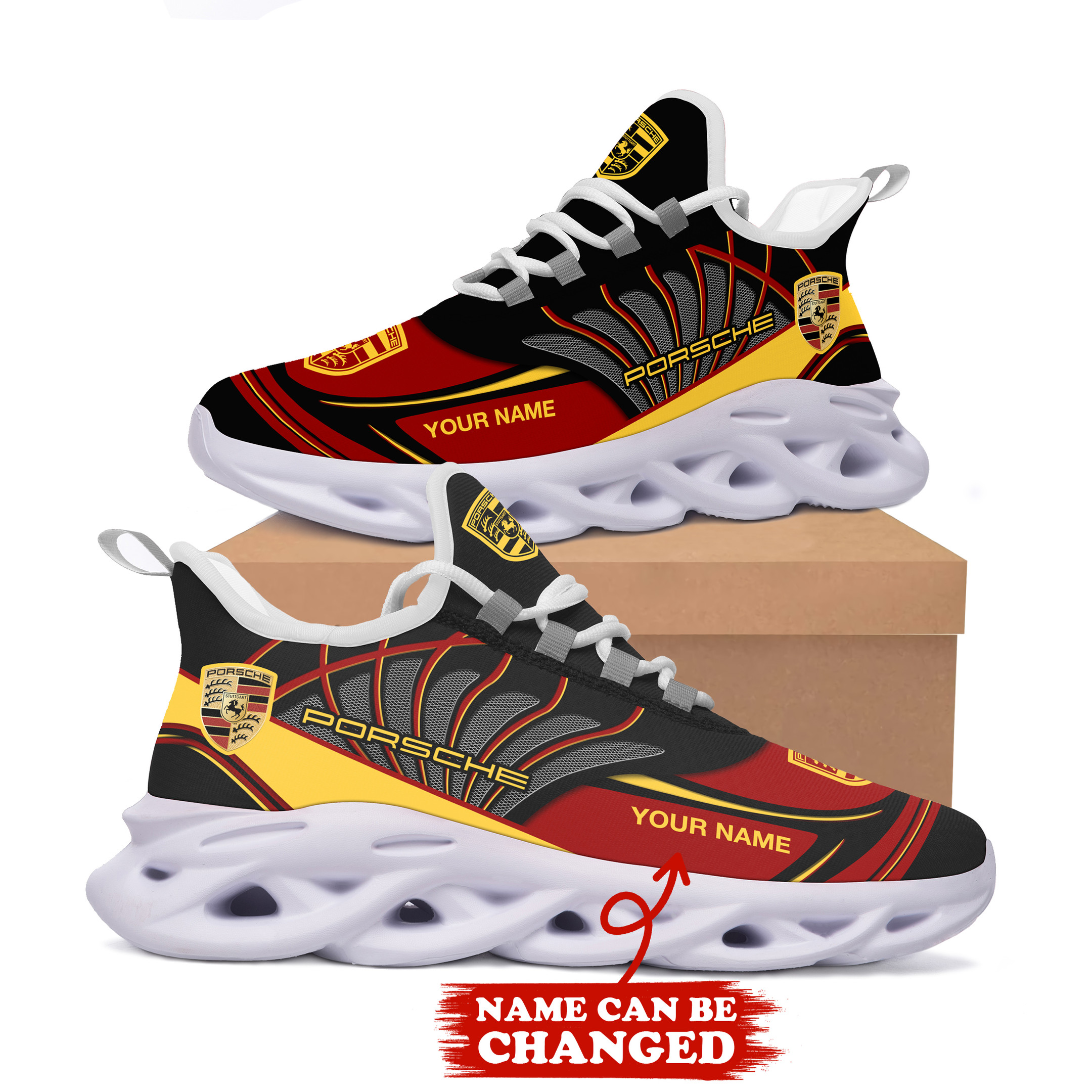 Porsche Max Soul Shoes Sneakers Printed White And Black Sole For Men And Women