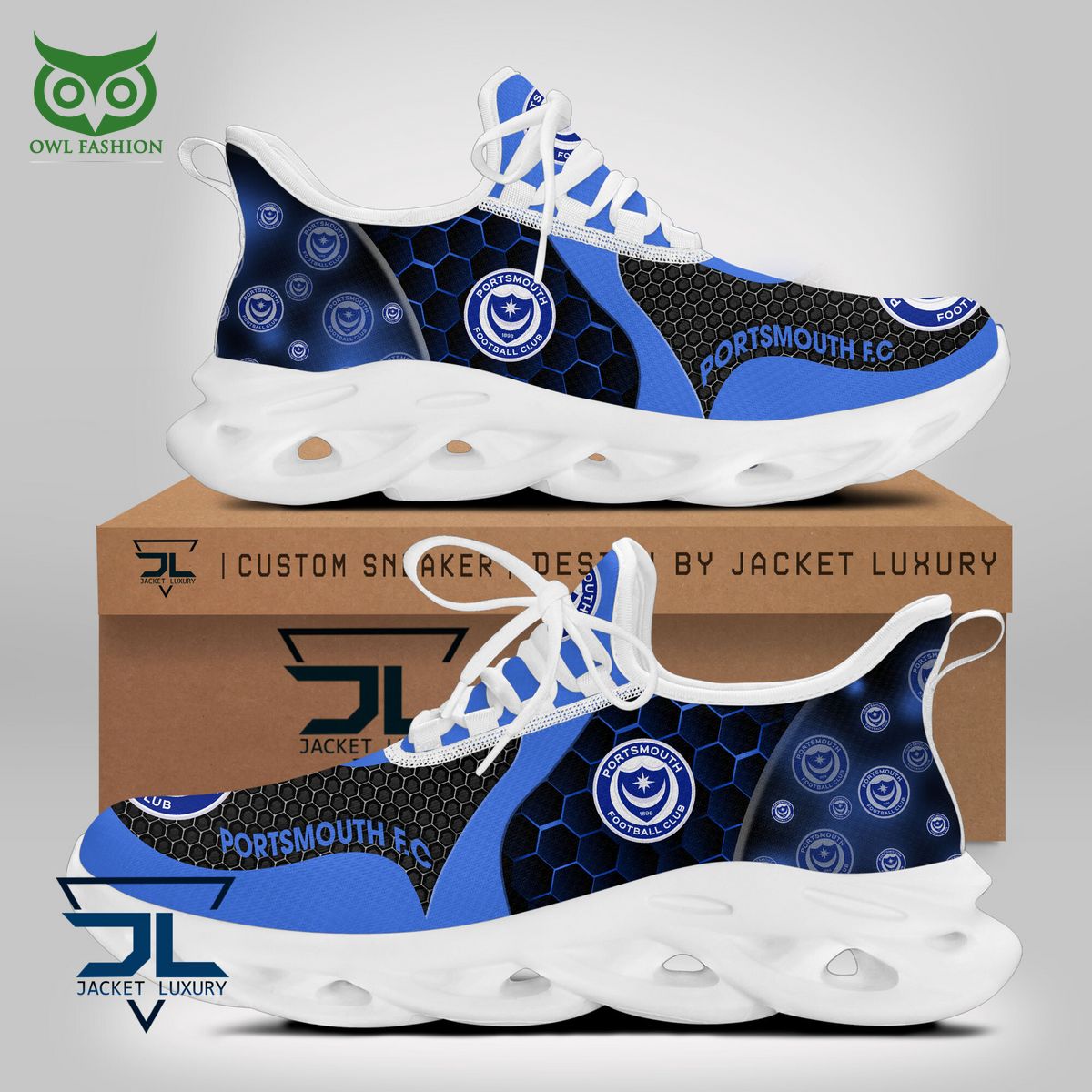 Portsmouth FC Max Soul Shoes Sneakers Printed White And Black Sole For Men And Women