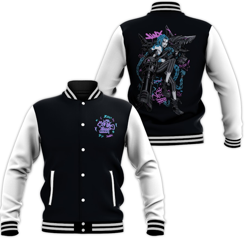 Arcane Jinx Baseball Jacket Hoodie Harajuku Style For Women & Men
