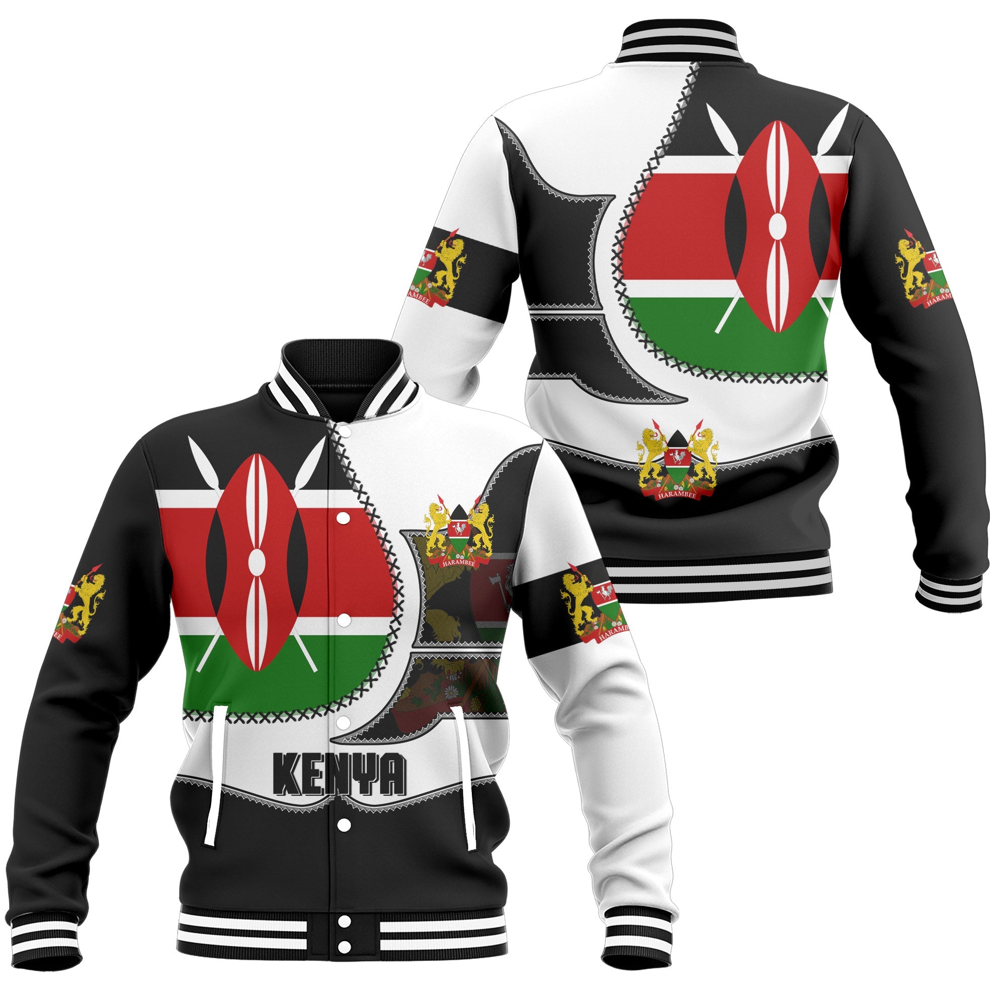 Kenya Baseball Jacket Flag & Coat Of Arms Leather Style
