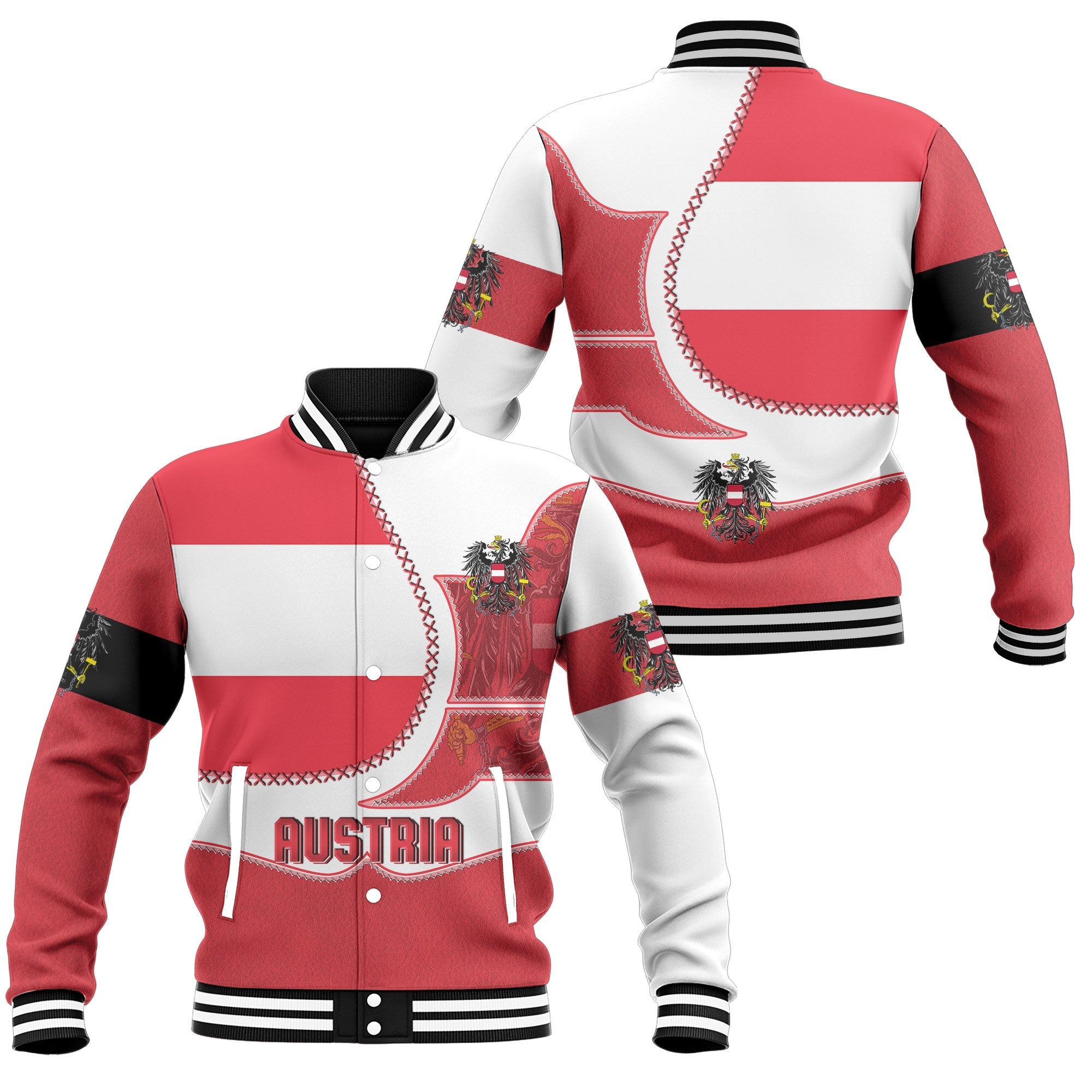 Austria Baseball Jacket Flag & Coat Of Arms Leather Style