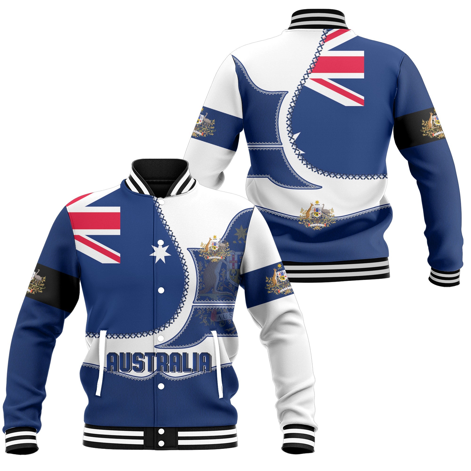 Australia Baseball Jacket Flag & Coat Of Arms Leather Style