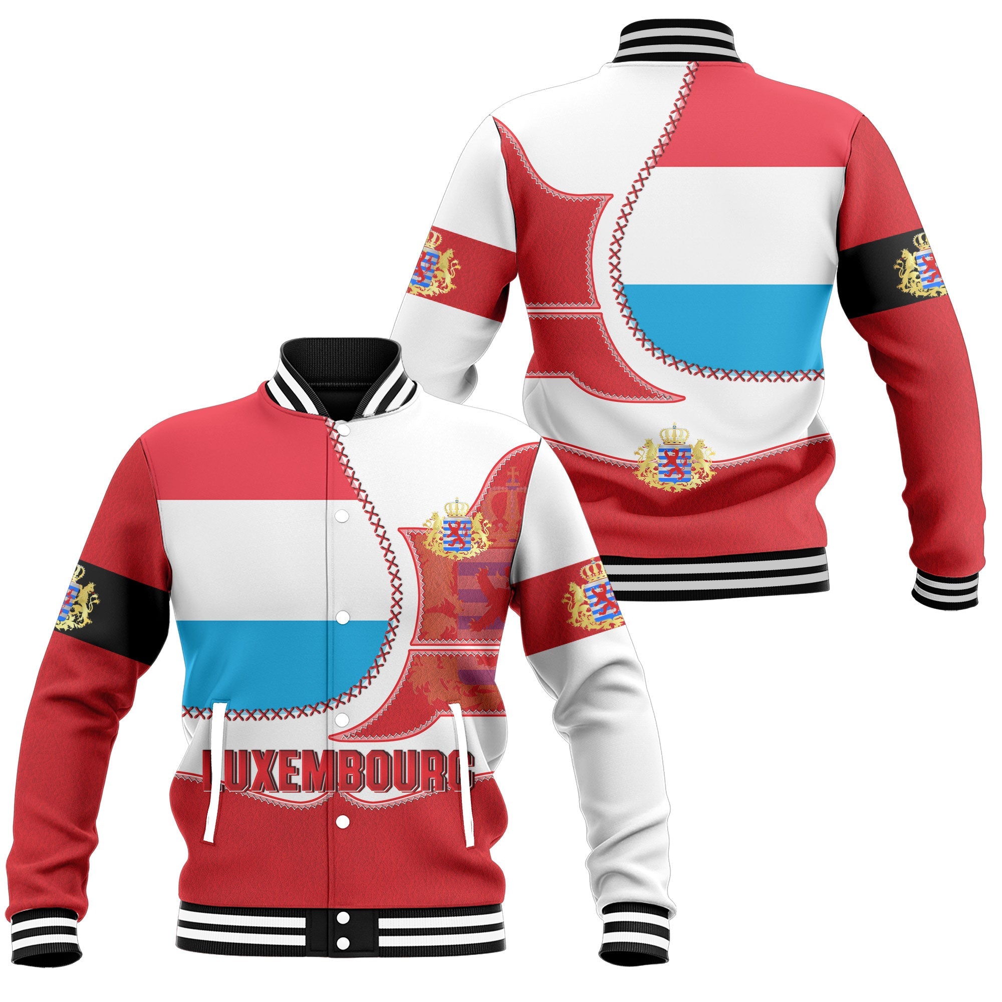 Luxembourg Baseball Jacket Flag & Coat Of Arms Leather Style