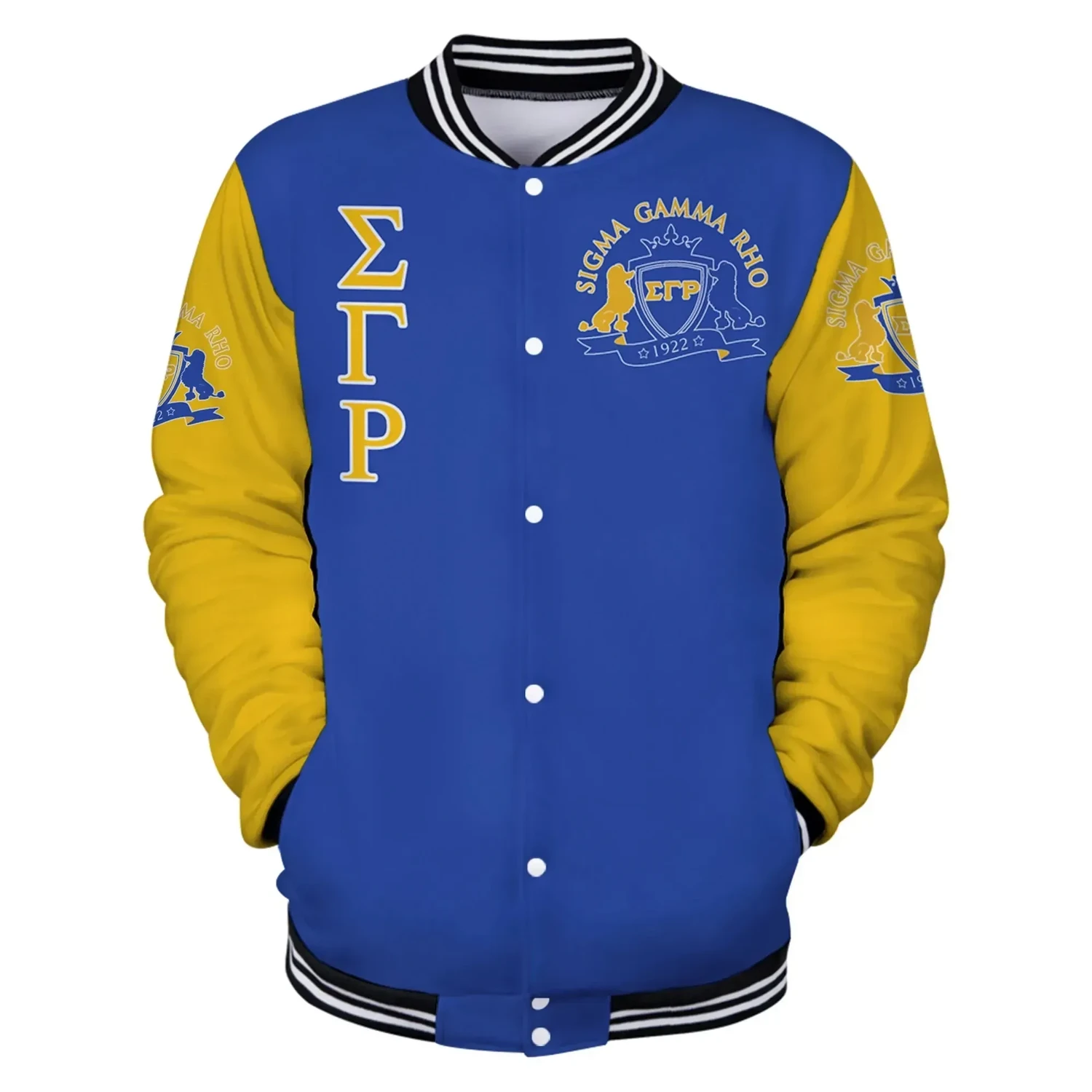Lux Sigma Gamma Rho Poodle Blue Yellow Baseball Jacket