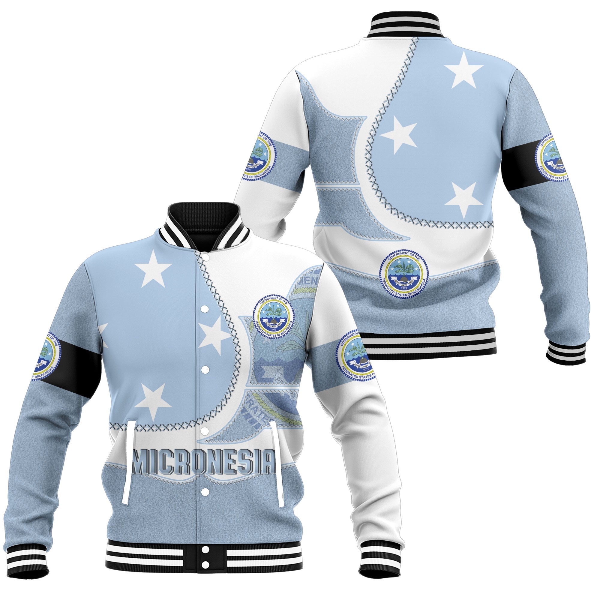 Micronesia Baseball Jacket Flag & Coat Of Arms Leather Style