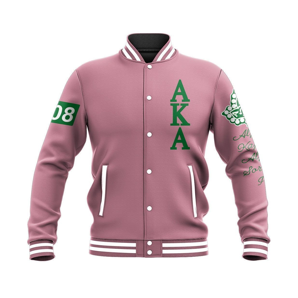 Aka Sorority Pearls Green Baseball Jacket