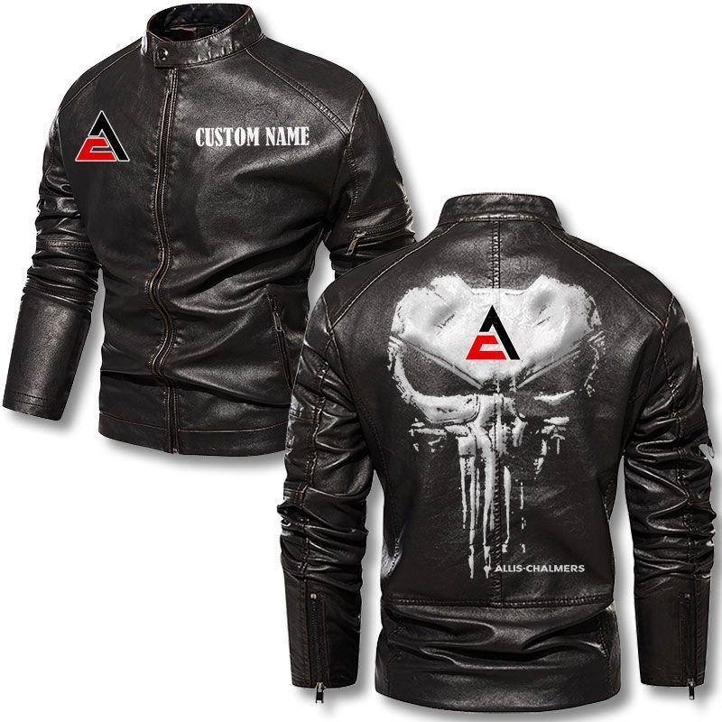 Custom Name Punisher Skull Allis Chalmers Motorcycle Leather Jacket