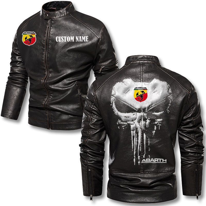 Custom Name Punisher Skull Abarth Motorcycle Leather Jacket