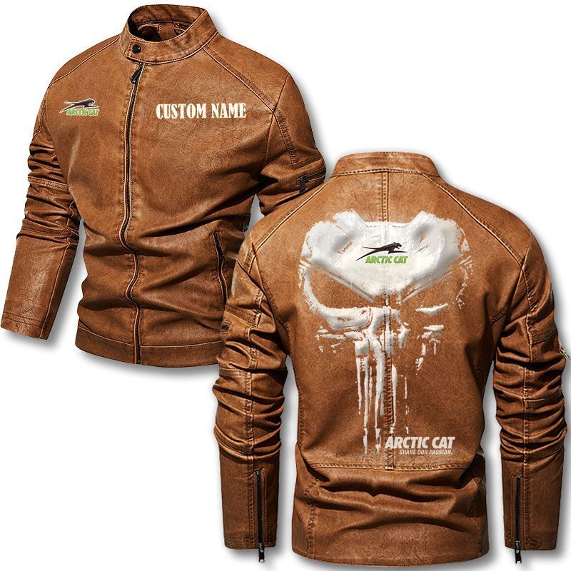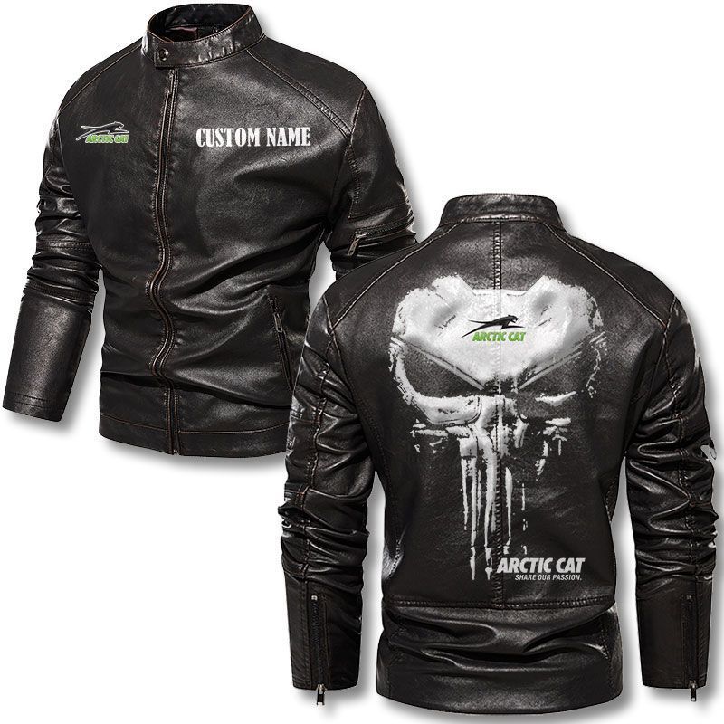 Custom Name Punisher Skull Arctic cat Motorcycle Leather Jacket