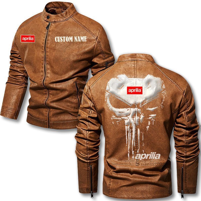Custom Name Punisher Skull Aprilia Motorcycle Leather Jacket